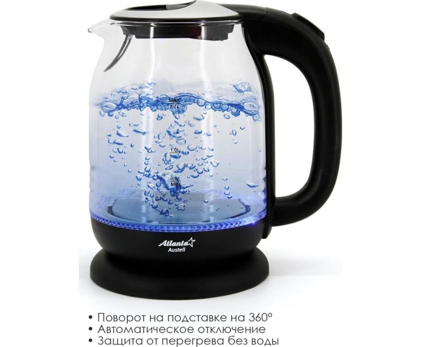 Чайник электрический ATLANTA ATH-2469 стекло черный
