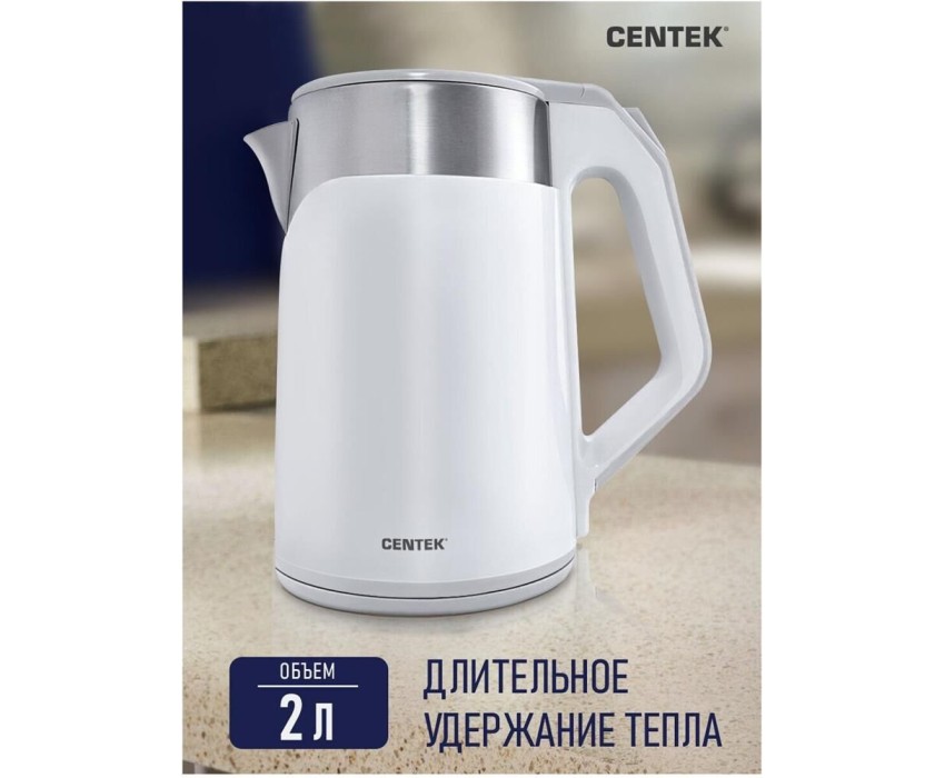 CENTEK CT-0023 Мощность2000 Вт Объем2.0 л Двойные стенки Удобная ручка Эффект термоса для сохранения тепла Защита от включения без воды Автоматическое выключение Скрытый нагревательный элемент