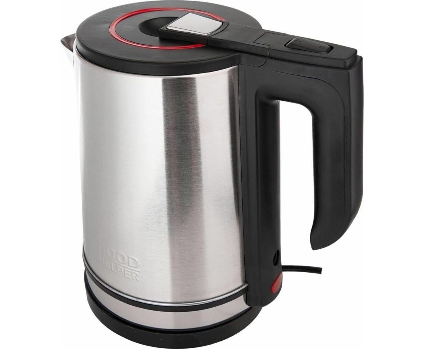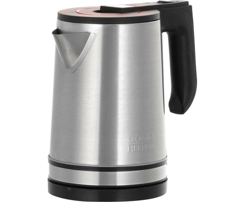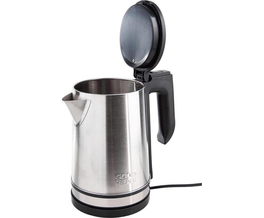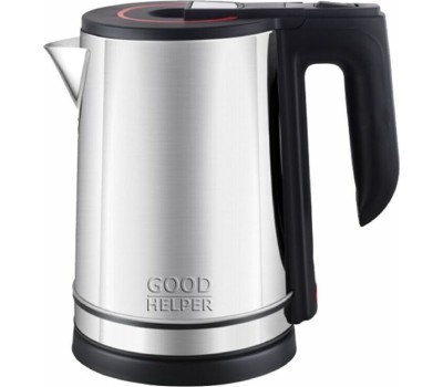 Новая классика. Объем 1.8л; Мощность 1800Вт; Автовыключение при закипании; Защита от включения без воды; Защита от перегрева; Поворачивающийся корпус (360°); Дисковый нагревательный элемент; Индикация включения; Корпус - нержавеющая сталь марки SS201; Ручка и крышка ABS-пластик; Рабочее напряжение 220В * 50Гц.; Логотип GOODHELPER выштампован на корпусе чайника.