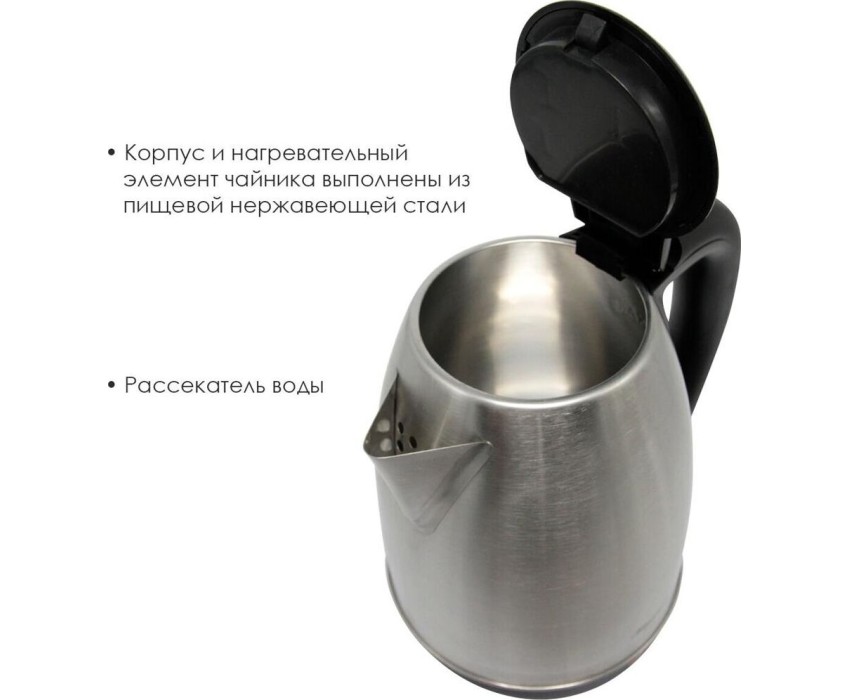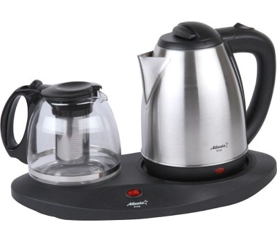 Объем 1,8 литра. Подогрев заварочного чайника. Заварочный чайник 1,2 литра. Поворот на подставке на 360°. Быстрое закипание. Закрытый нагревательный элемент. Автоматическое отключение. Защита от перегрева без воды. Электрошнур в цокольной подставке. Номинальная мощность 1500 Вт. 230 B ~ 50 Гц.