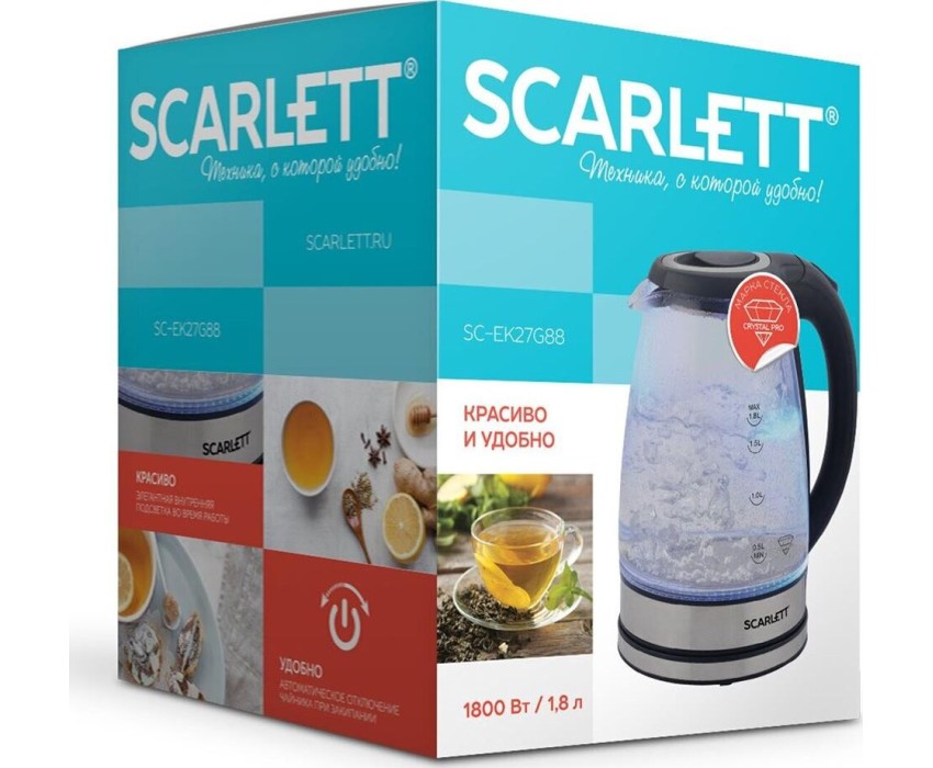 Чайник электрический SCARLETT SC-EK27G88 стекло/черный 1,7л