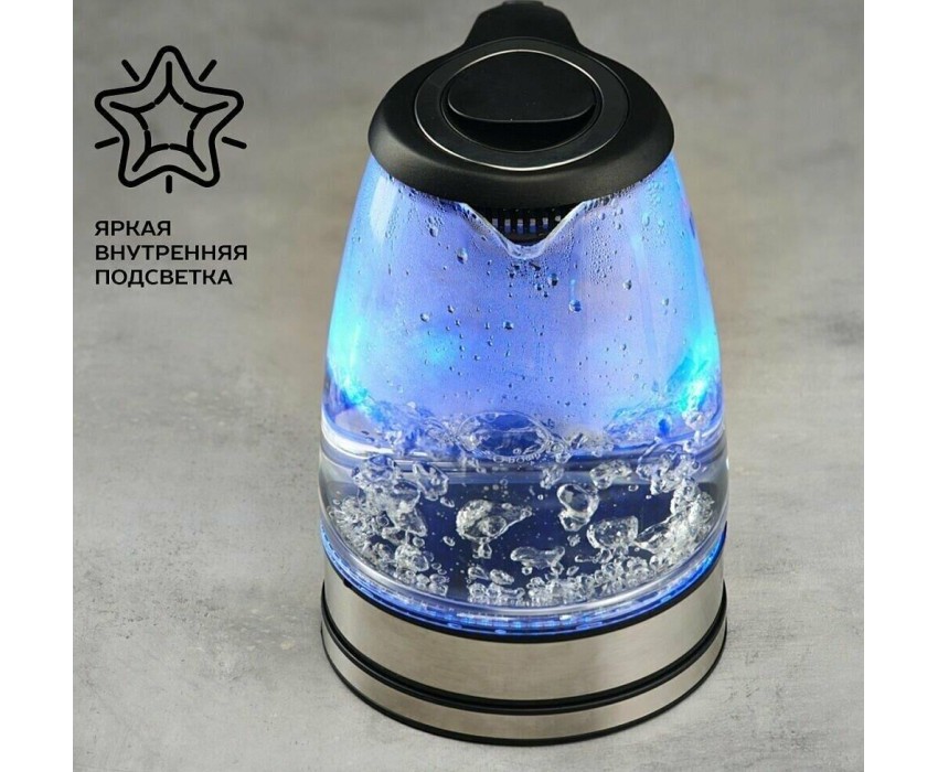 Мощность, Вт: 1800 Объем, л: 1.7 Способ открывания крышки: Традиционная система открытия крышки Индикатор уровня воды: Шкала Отсек для хранения электрошнура: Да Материал корпуса: Стекло Вид нагревательного элемента: Закрытый Внутренняя подсветка: Да Система многоуровневой безопасности «Safe Work»: Да Цвет: Черный