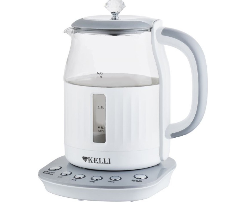 Электрический стеклянный чайник. Объем: 1,7 л Мощность: 1850-2200 Вт. Световой индикатор. Поворот корпуса 360°. 4 температурных режима : 70/80/90/100С. Автоматическое отключение. Функция поддержания температуры. Защита от перегрева. Закрытый нагревательный элемент изготовлен из термозащитного стекла с дополнительным пластиковым корпусом. Удобный носик чайника. Сеть: 220-240В, 500Гц. комбинированный цвет: бело/серый.