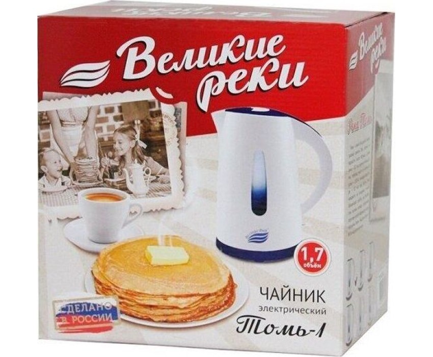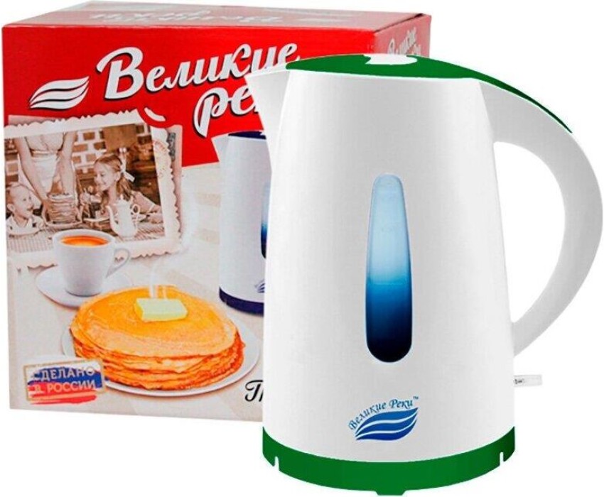 Чайник электрический ВЕЛИКИЕ РЕКИ Томь-1 белый/зеленый, 1,7 л