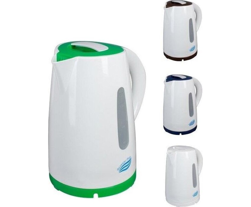 Корпус из первичного пластика.Защита от включения без воды.Автоматический и ручной выключатель с индикацией работы чайника.Поворот на подставке 360° Автоматическое отключение при снятии с подставки.Дисковый нагревательный элемент из высококачественной нержавеющей стали.Отсек для хранения шнура Объем 1,7 л.