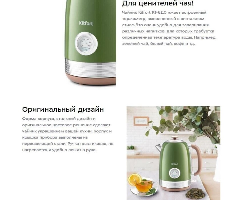 Чайник KITFORT KT-6110 зеленый (нержавеющая сталь)