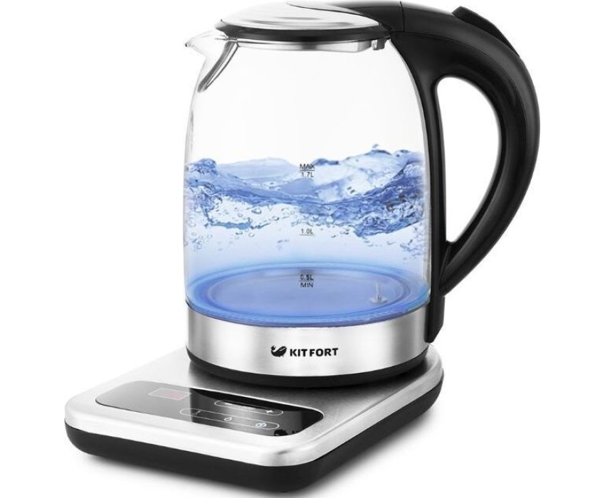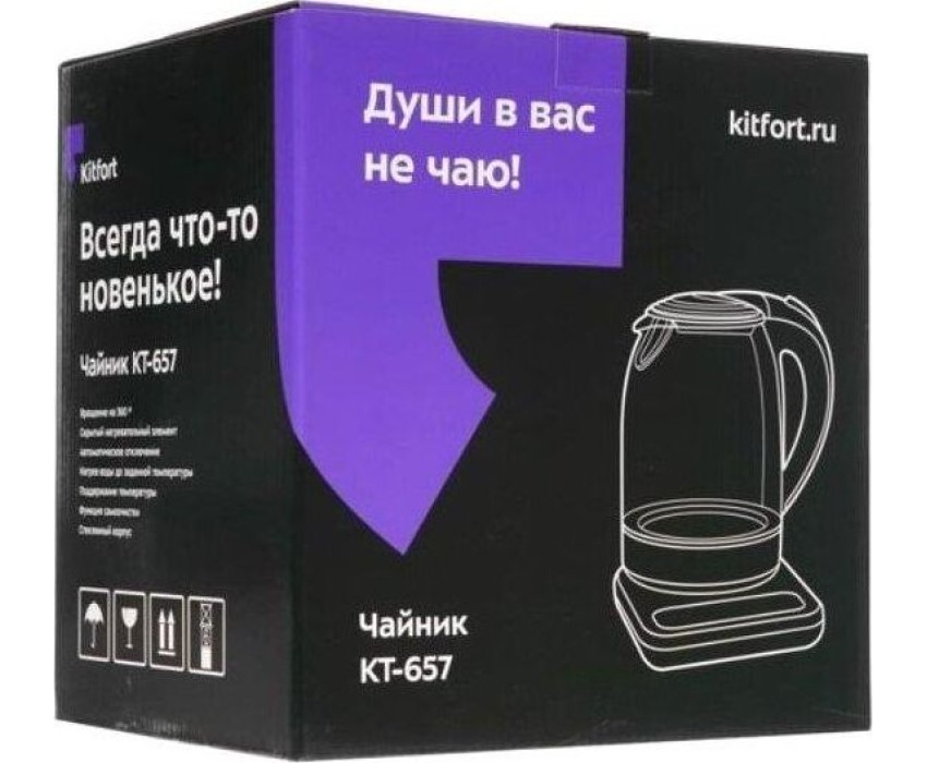 Чайник KITFORT КТ-657 нержавеющая сталь/черный (стекло)