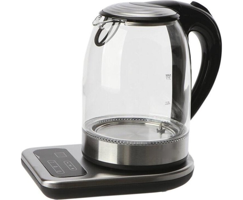Мощность 2200 Вт. Максимальный объем 1.7 л. Нагревательный элемент скрытый. Индикатор включения есть. Индикатор уровня воды есть. Фильтр от накипи есть. Автоматическое отключение есть. Регулировка температуры нагрева есть. Дисплей есть. Кнопка открытия крышки есть. Подставка 360 градусов да. Защита от включения без воды есть. Подсветка воды есть. Поддержание температуры воды есть. Звуковой сигнал при закипании есть. Материал корпуса стекло и пластик. Цвет нержавеющая сталь.