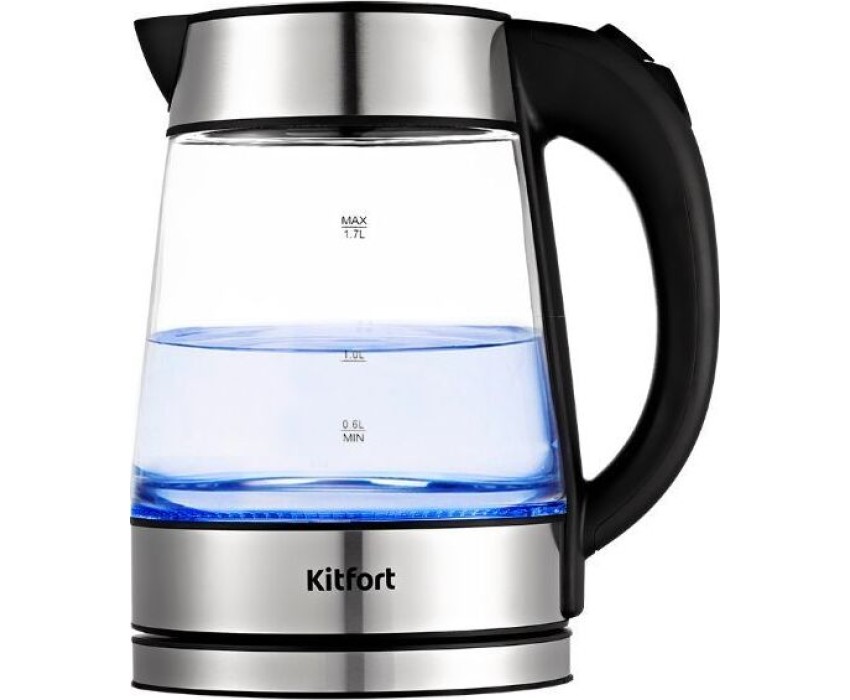 Чайник Kitfort КТ-6118 выполнен из стекла, пластика и нержавеющей стали. Подсветка голубого цвета поможет определить количество воды в чайнике даже в темноте. Мерная шкала нанесена на корпус. Благодаря своему дизайну идеально впишется в любой интерьер Продуманная конструкцияДля удобства использования кнопки включения чайника и открывания крышки находятся на ручке чайника.Защита от накипиВ носике чайника расположен съёмный нейлоновый фильтр, который задерживает частички накипи и предотвращает их попадание в чашку.