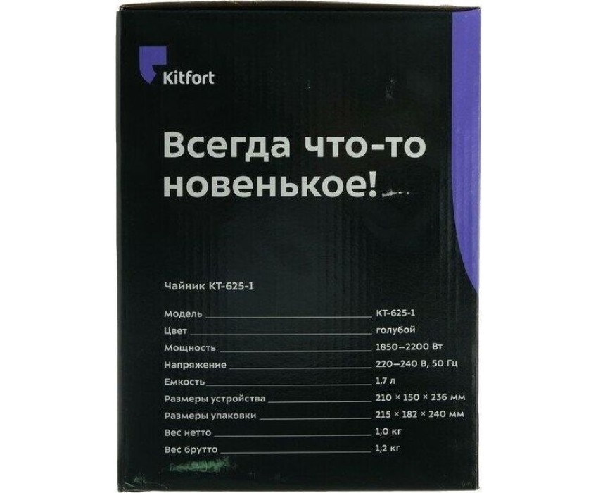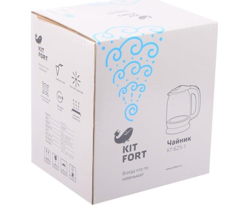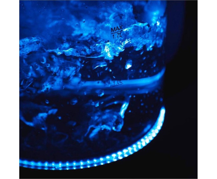 Мощность 2200 Вт. Максимальный объем 1.7 л. Нагревательный элемент скрытый. Индикатор уровня воды есть. Автоматическое отключение есть. Кнопка открытия крышки есть. Подставка 360 градусов да. Подсветка воды есть. Материал корпуса стекло и пластик.