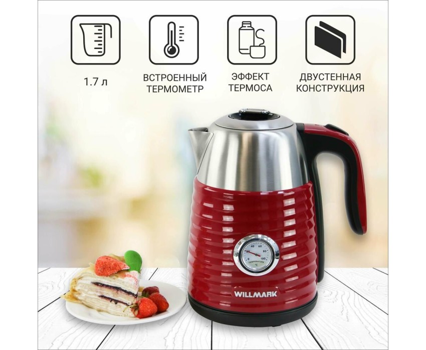 Чайник электрический WILLMARK WEK-1738PST красный