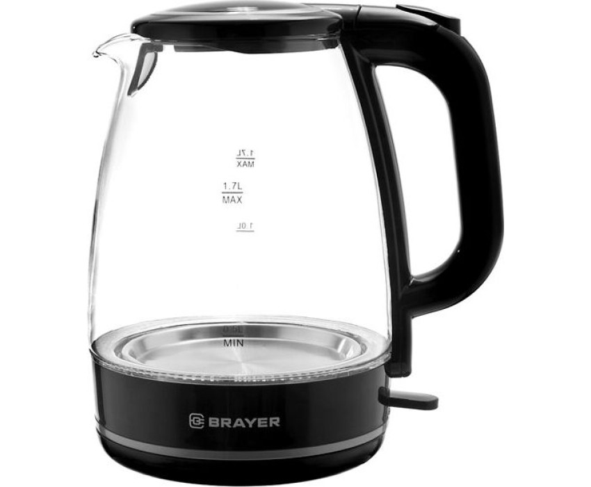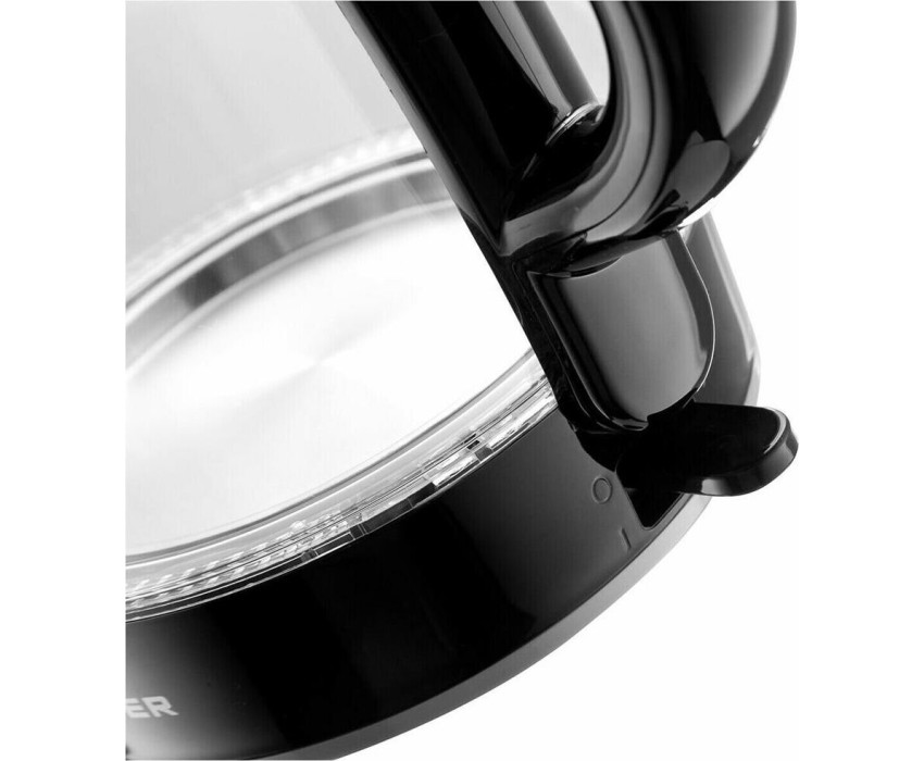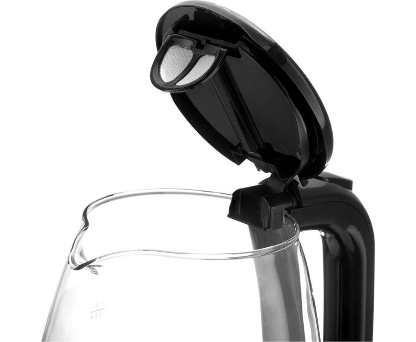 Максимальная мощность 2200 Вт Максимальный объём 1,7 л Корпус из высокопрочного стекла Шкала уровня воды Автоотключение при закипании воды Отключение при отсутствии воды Моющийся фильтр Противоскользящее основание Электропитание 220-240 В, ~50-60 Гц