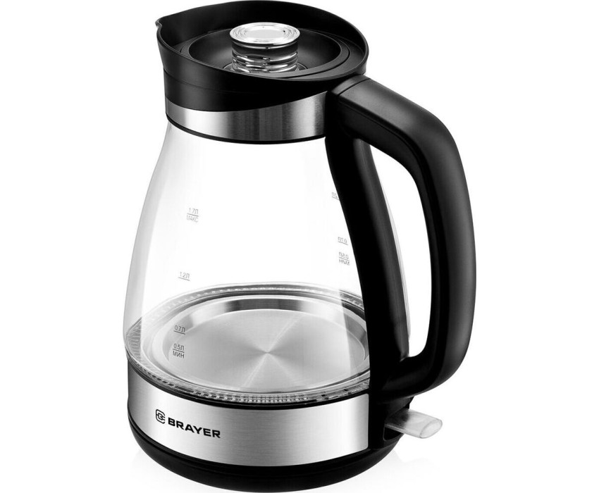 Максимальная мощность 2200 Вт Объём 1,7 л Корпус из высокопрочного термостойкого стекла Внутренняя подсветка Автоотключение при закипании Отключение при отсутствии воды