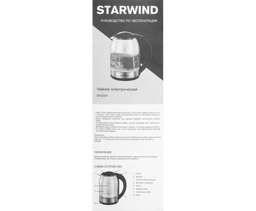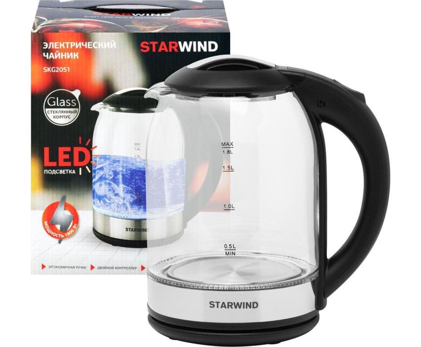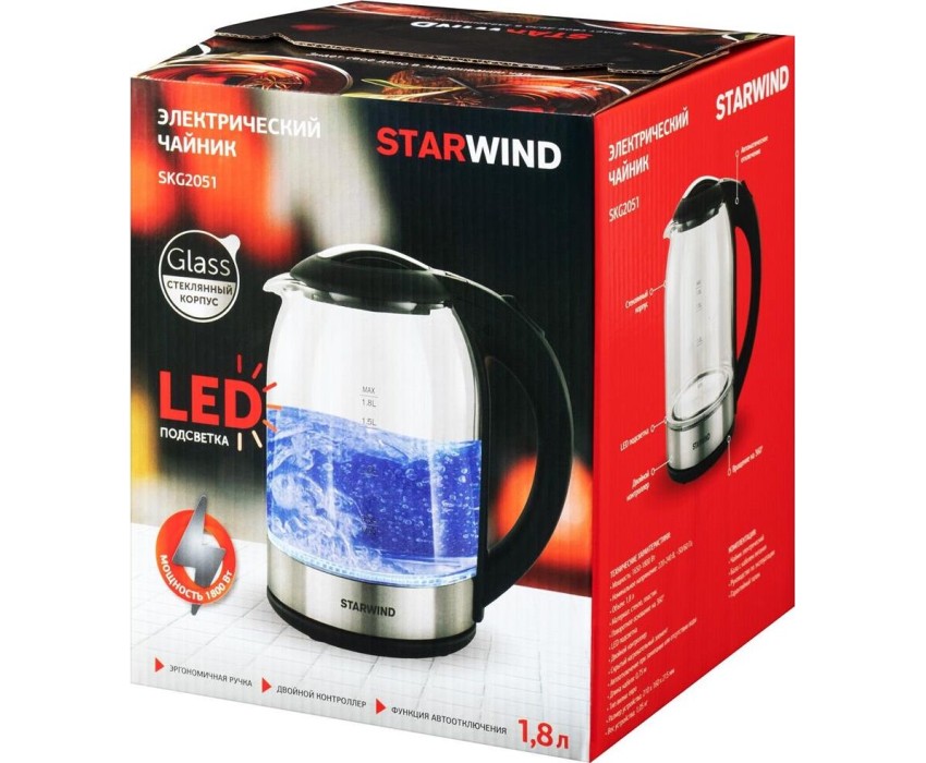 Чайник электрический STARWIND SKG2051 (1,8л. стекло)