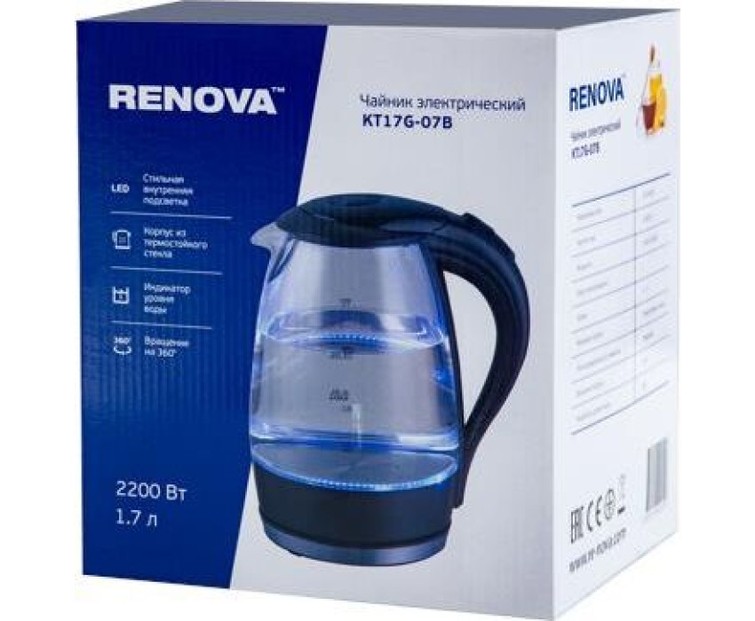 1,7 л. Термостойкое стекло. Мощность 2200 Вт. Закрытый нагревательный элемент, Защита от включения без воды, Защита от перегрева, Фильтр от накипи Габариты изделия/упаковки 211.2 * 160 * 249/822*18.7*25. Вес нетто/брутто 1,2/1,3
