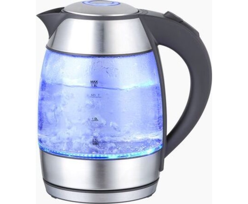 1,8 л. Термостойкое стекло. Мощность 2200 Вт. Закрытый нагревательный элемент, Защита от включения без воды, Защита от перегрева, Фильтр от накипи Габариты изделия/упаковки 221.8* 156.3 * 230/21*18*23.8. Вес нетто/брутто 1,27/1,38