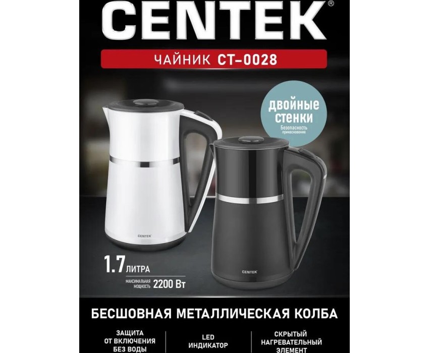 Чайник электрический CENTEK CT-0028 White (1,7л. металл/пластик)