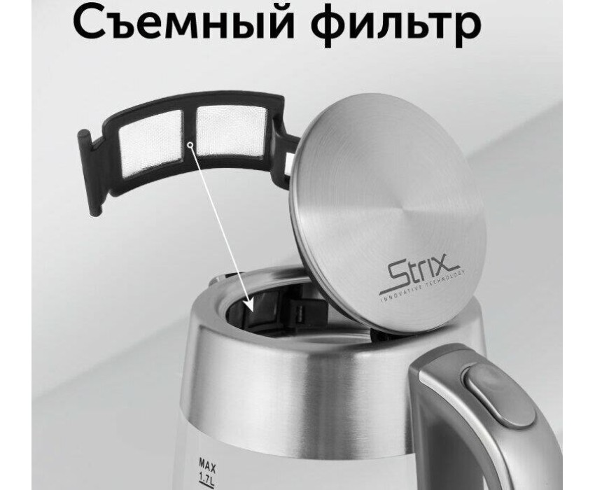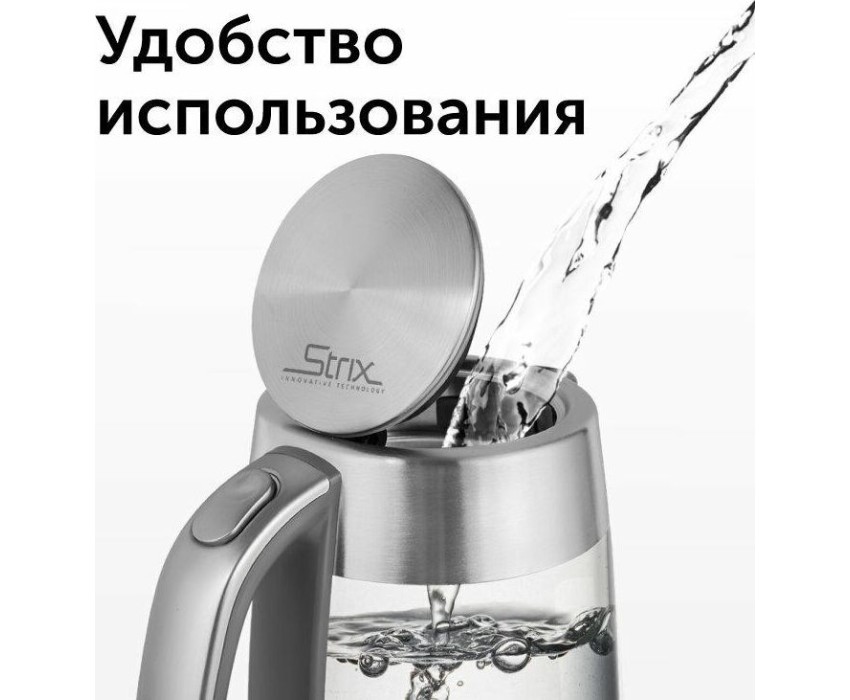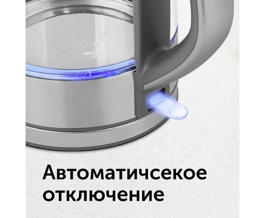 Мощность 1850-2200 Вт Напряжение 220-240 В, 50 Гц Объем 1,7 л Защита от поражения электрическим током класс I Тип нагревательного элемента дисковый, скрытый Тип стали нагревательного элемента 304, 10/18 Контактная группа STRIX Мерная шкала градуированная Материал корпуса жаропрочное стекло Автоотключение при недостаточном количестве воды есть Автоотключение при закипании есть Длина шнура электропитания 0,7 м Габаритные размеры (ШхВхГ) 220х238х150 мм Вес нетто 1 кг