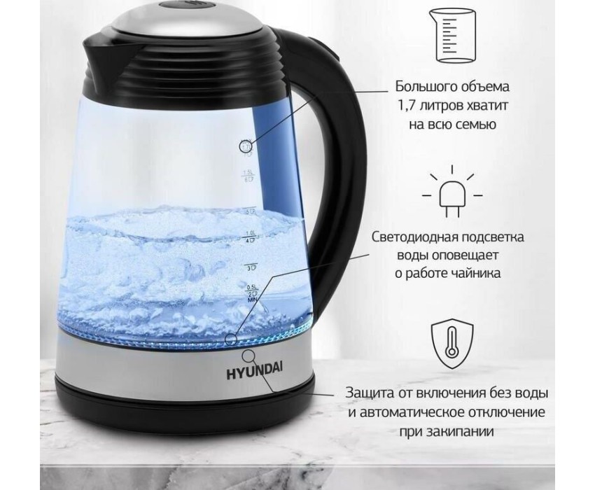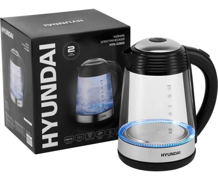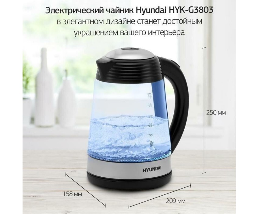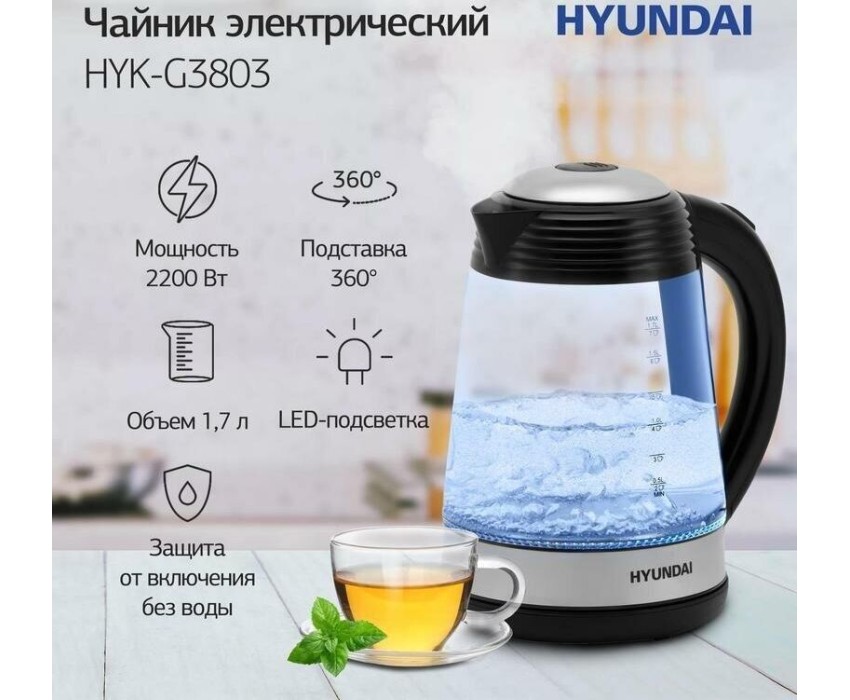 Чайник электрический HYUNDAI HYK-G3803 (1,7л. стекло)
