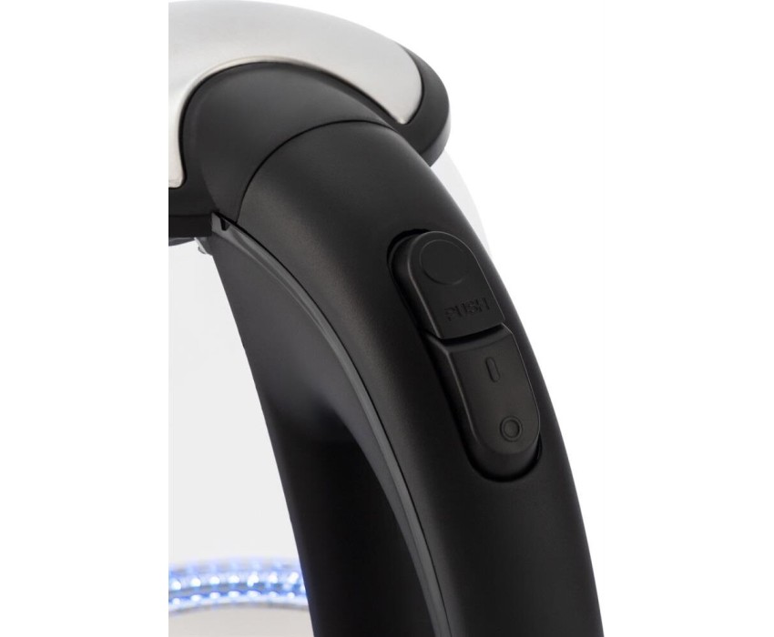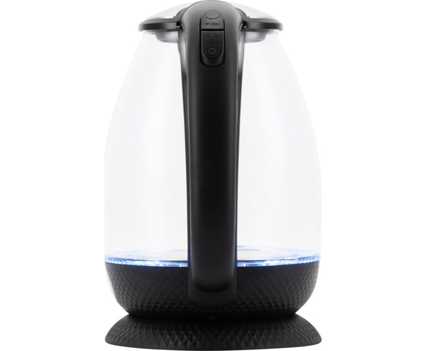Максимальный объем 1.7 л Мощность 2200 Вт Нагревательный элемент скрытый Цвет черный Материал корпуса стекло Индикатор включения Индикатор уровня воды Фильтр от накипи Температурные режимы 1 шт Кнопка открытия крышки Защита от включения без воды Подсветка воды Подставка 360 градусов Колба из высококачественного боросиликатного стекла Срок гарантии 24 мес.