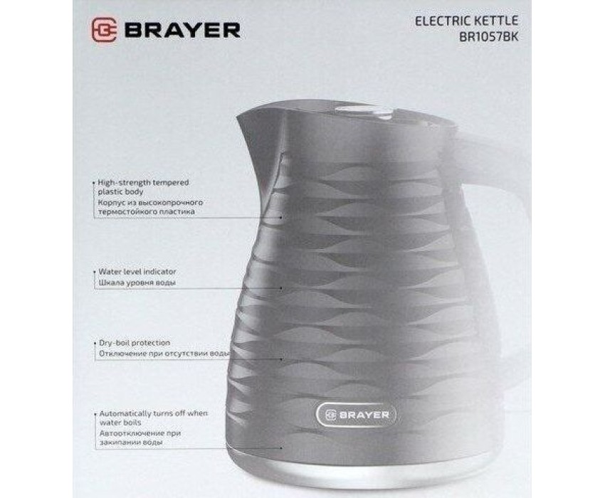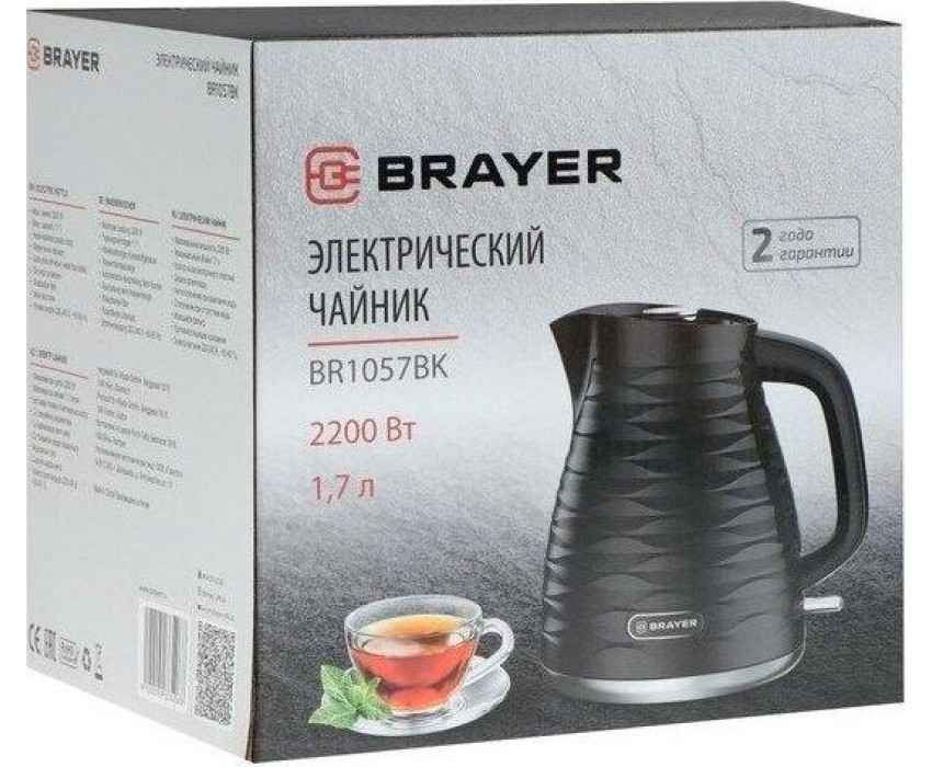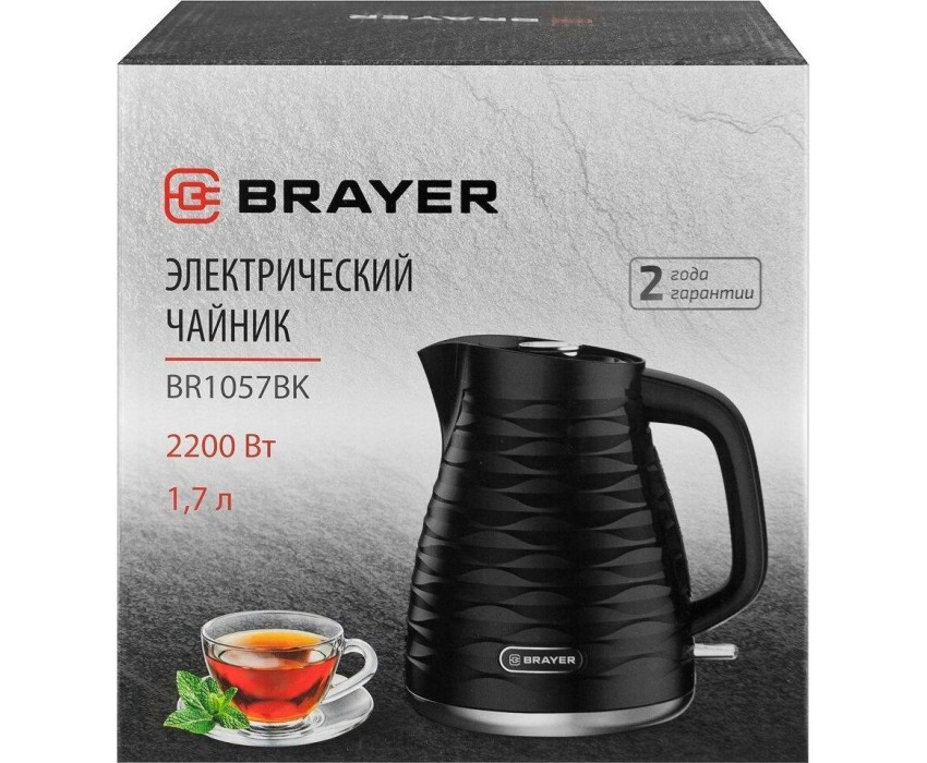 [Чайники BRAYER] BRAYER 1057BR Чайник, 1.7л, 2200Вт, черный