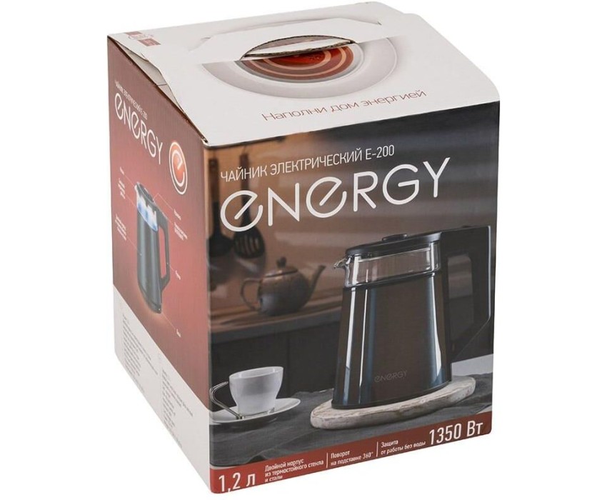 Объем 1,2 л Двойной корпус из термостойкого стекла и стали Закрытый нагревательный элемент из нержавеющей стали Поворот на подставке 360° Защита от работы без воды Автоматический выключатель Световой индикатор работы Место для хранения шнура Мощность 1350 Вт