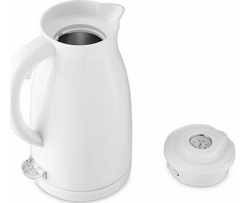 Чайник с эффектом термоса, Мощность:1800 Вт, Объем: 1,5л, Материал корпуса: сталь внутри/пластик снаружи, Автоотключение при недостаточном количестве воды, Индикация работы, Вращение на подставке 360 градусов, Индикатор температуры, Отсек для хранения электрошнура, Вес нетто 1.1 кг, Защита от поражения электрическим током Класс I, Напряжение 220-240В, 50-60 Гц