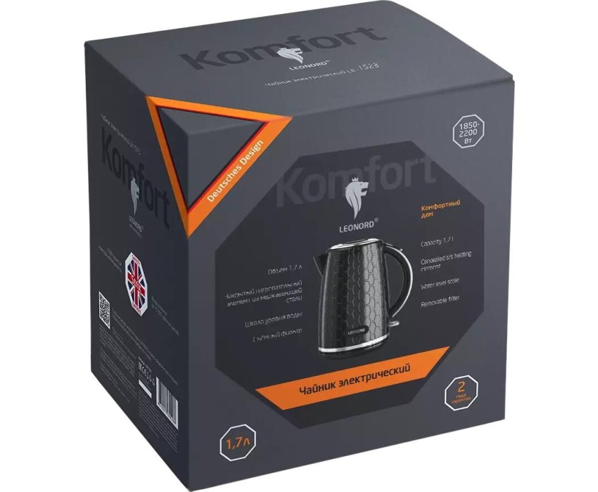 Чайник электрический LEONORD LE-1523 black (1,7л. металл/пластик) 107961
