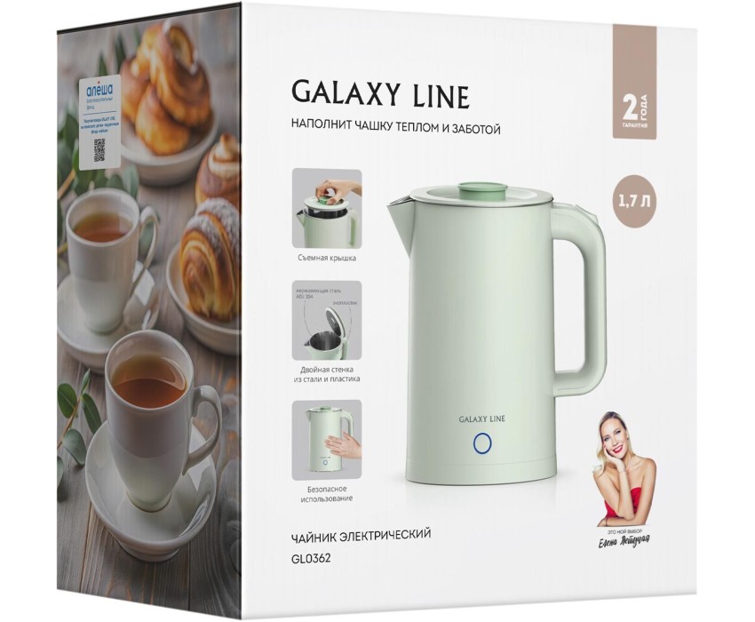 Чайник электрический GALAXY LINE GL 0362 light green (1,7л. металл/пластик)