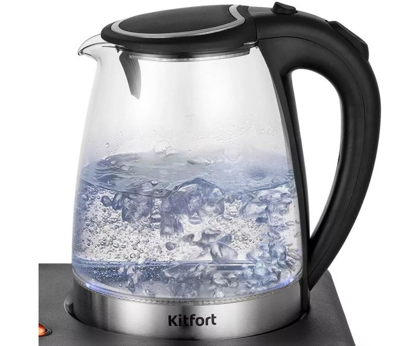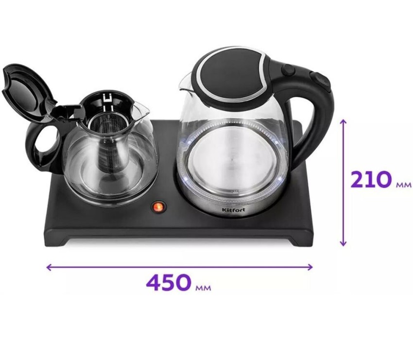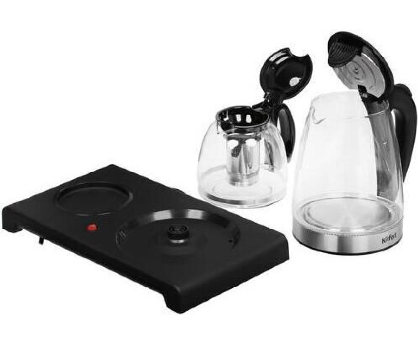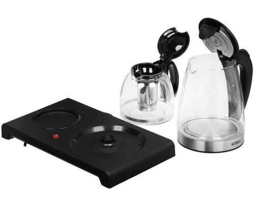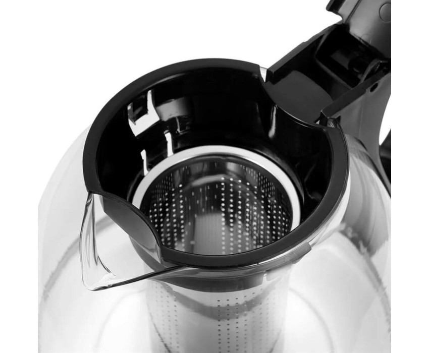 Мощность 1500 Вт. Максимальный объем 2 л. Нагревательный элемент скрытый Индикация. включения, уровня воды. Безопасность автоотключение, защита от включения без воды. Конструктивные особенности заварочный чайник, кнопка открытия крышки, подсветка воды, фильтр от накипи. Материал корпуса стекло/пластик. Цвет черный. Вес товара 1.7 кг.