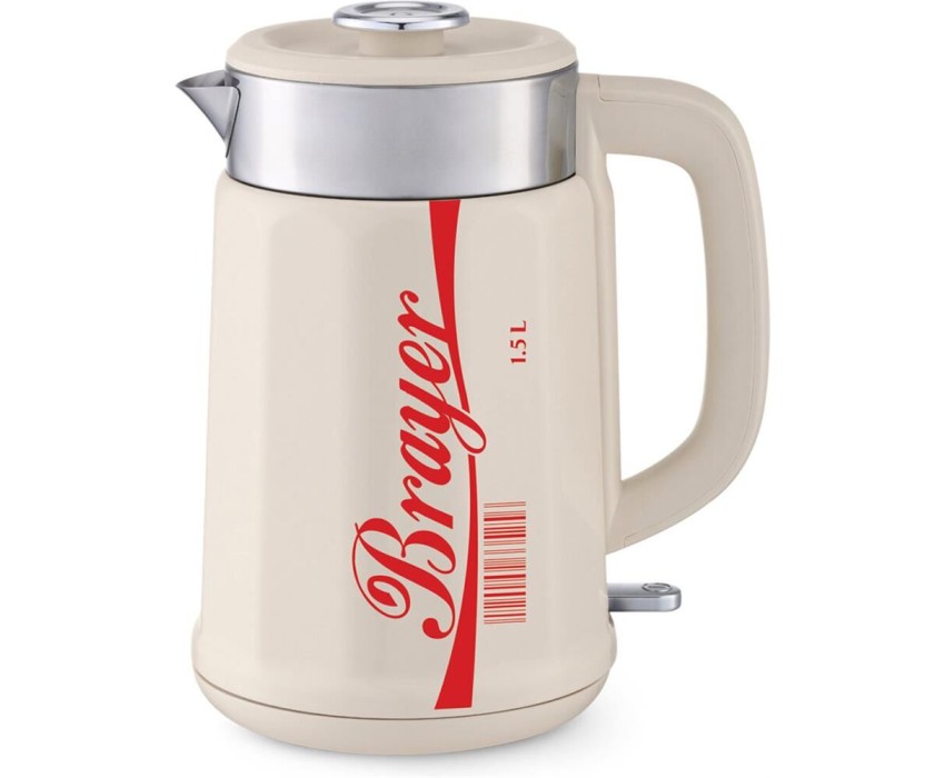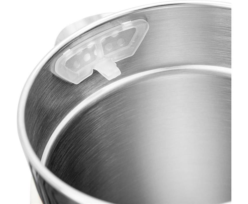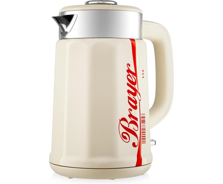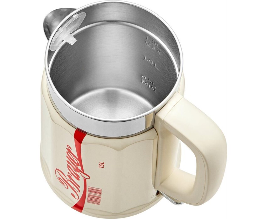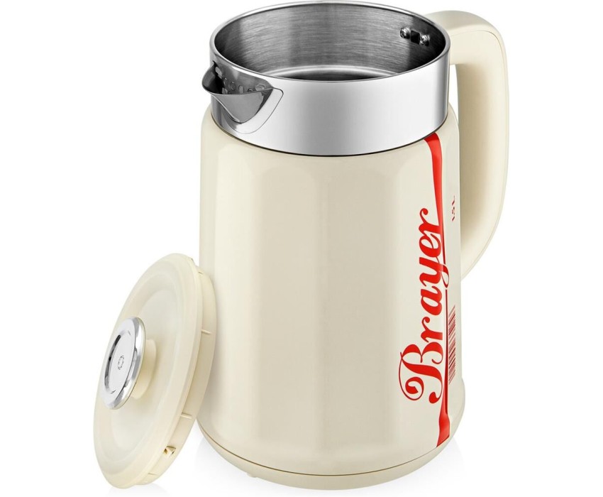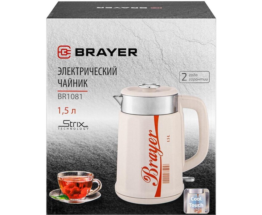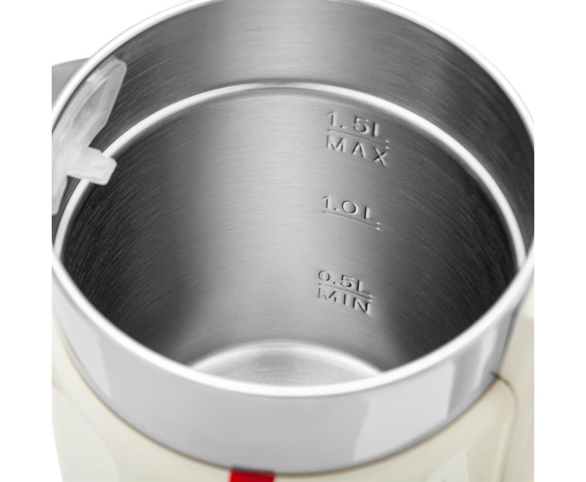 Чайник электрический. Объем: 1,5 литра. Мощность 2200 Вт. Материал корпуса: металл/пластик (2 стенки). Крышка полностью съемная. Терморегулятор. Автоотключение при отсутствии воды. Мерная шкала уровня воды.