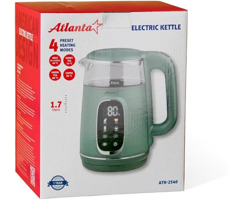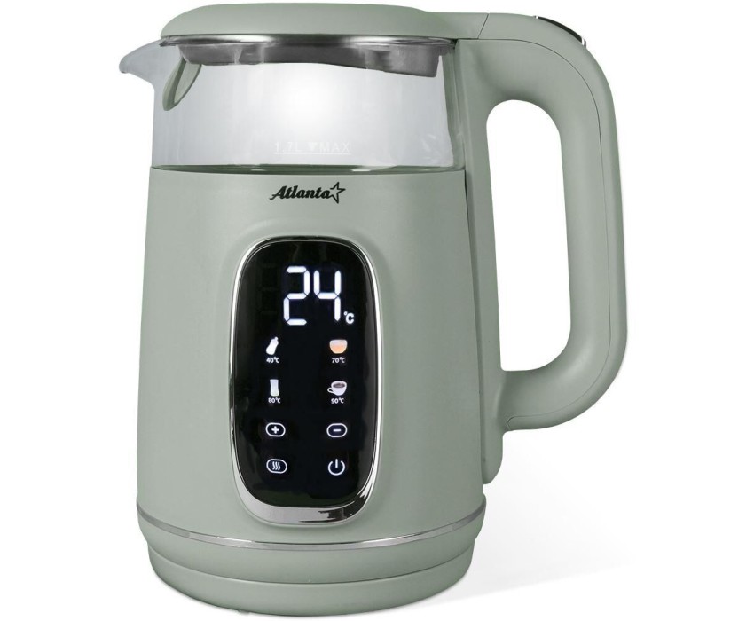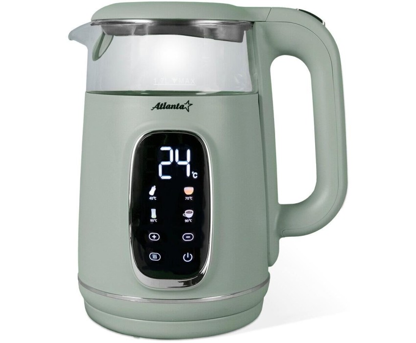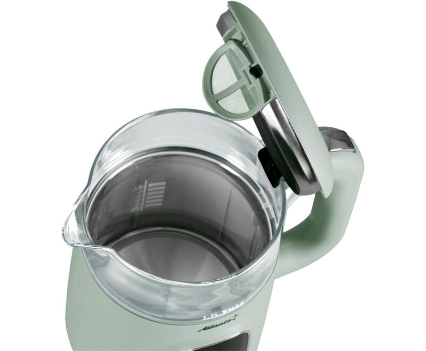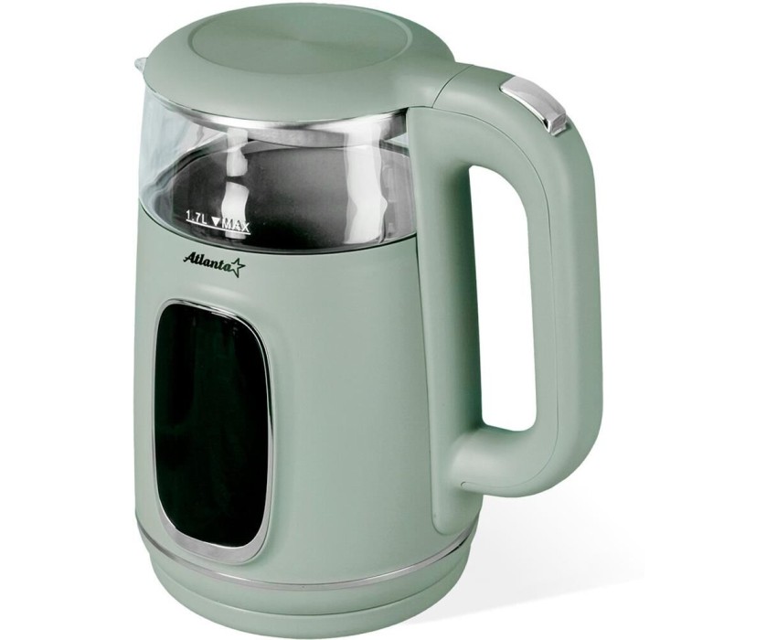 Чайник Atlanta ATH-2540 - это двухстенный электрочайник, выполненный в стильном зеленом цвете. Объем чайника составляет 1,7 литра, что позволяет приготовить достаточное количество напитка для большой компании. Особенностью этого чайника является композитный двухслойный корпус. Внутренняя колба выполнена из термостойкого боросиликатного стекла, что обеспечивает долговечность и безопасность использования.