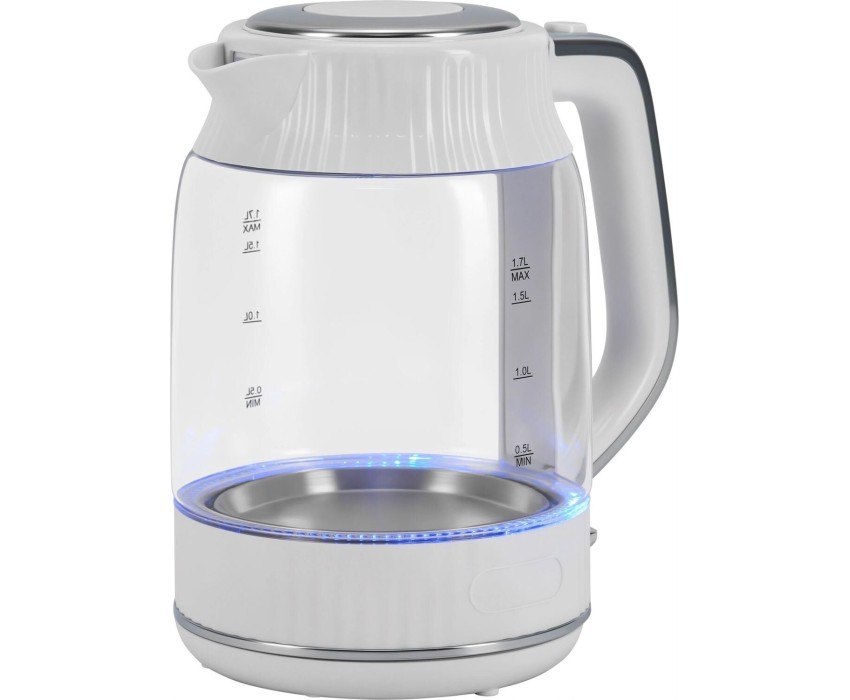 Максимальный объем 1.7 л Мощность 2200 Вт Нагревательный элемент скрытый Материал корпуса стекло/пластик Температурные режимы 1 шт Индикация включения, уровня воды Дополнительные функции:отсутствует Безопасность:автоотключение, защита от включения без воды Конструктивные особенности: кнопка открытия крышки, подсветка воды, подставка 360, фильтр от накипи