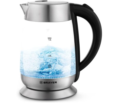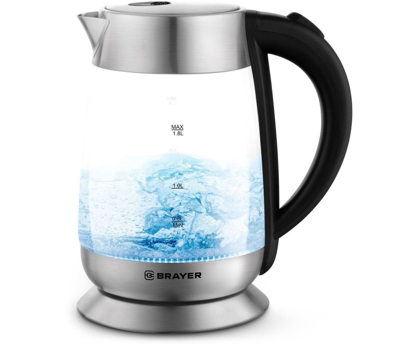 Максимальная мощность 2200 Вт Максимальный объем 1,8 литра Корпус из высокопрочного термостойкого стекла Внутренняя подсветка Автоотключение при закипании воды Отключение при отсутствии воды Моющийся фильтр Противоскользящее основание Электропитание 220-240 В, ~ 50-60 Гц