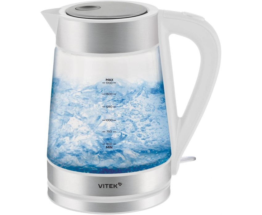 VITEK Чайник электрический VT-WK1030 1.7л. 2200Вт белый/серебристый корпус: стекло