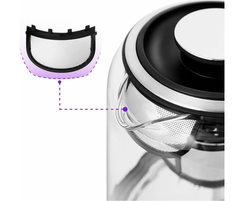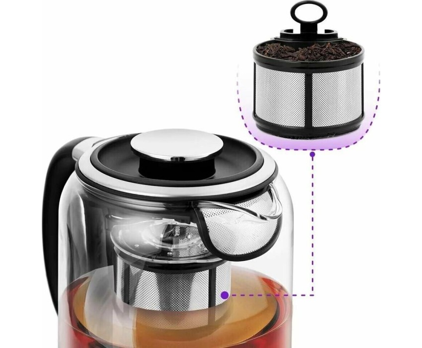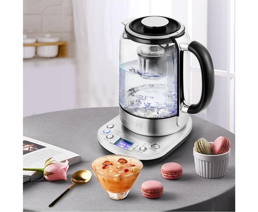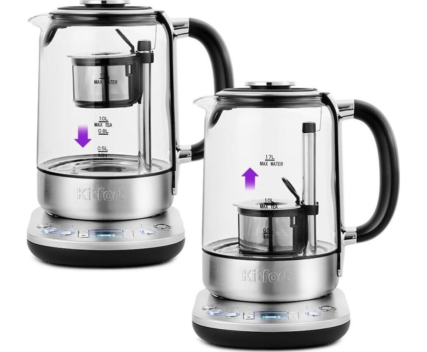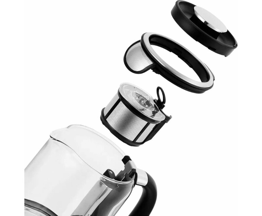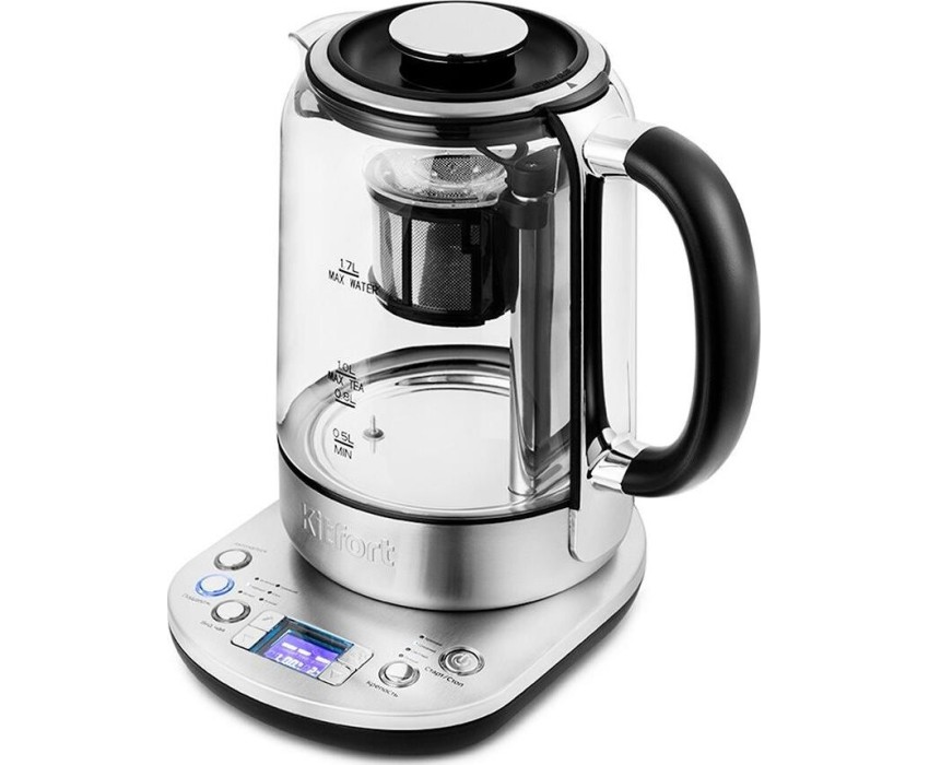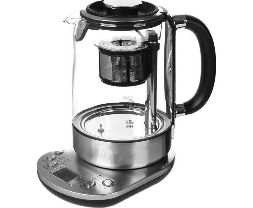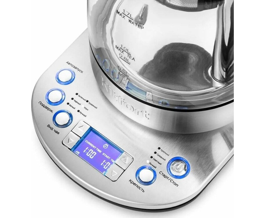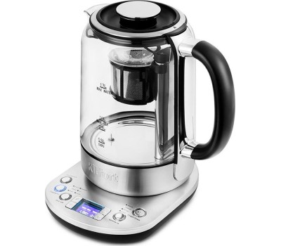 Мощность: 2200. Максимальный объем: 1.7. Нагревательный элемент: скрытый. Цвет: нержавеющая сталь. Температурные режимы: 6. Особенности: В чайнике установлено 5 режимов популярных сортов чая: чёрный, зелёный, белый, травяной и улун; и 3 типа крепости заваривания: крепкий, средний и светлый. С помощью ручного режима, вы сможете задать нужную температуру и время заваривания чая на ваш вкус. Автоматический чаезаварочный механизм.. Габариты упаковки (ед) ДхШхВ: 0.25x0.2x0.32. Вес упаковки (ед): 2.85. Материал корпуса: стекло/металл/пластик. Индикация: включения, уровня воды. Безопасность: автоотключение, защита от включения без воды. Конструктивные особенности: дисплей, заварочный чайник, подставка 360, фильтр от накипи. Дополнительные функции: поддержание температуры, регулировка температуры нагрева, таймер. Объем: 1.7 л. Мощность: 2200 Вт. Нагревательный элемент: скрытый. Материал корпуса: стекло/металл/пластик