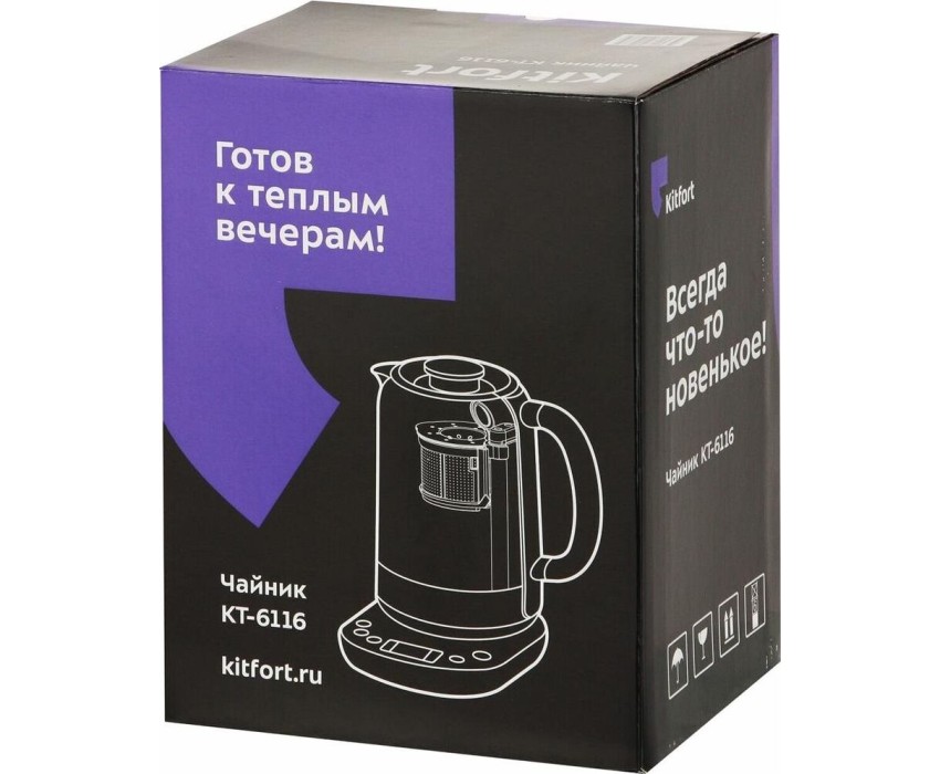 Чайник электрический KITFORT Чайник электрический КТ-6116, 1.7л, стекло/металл/пластик
