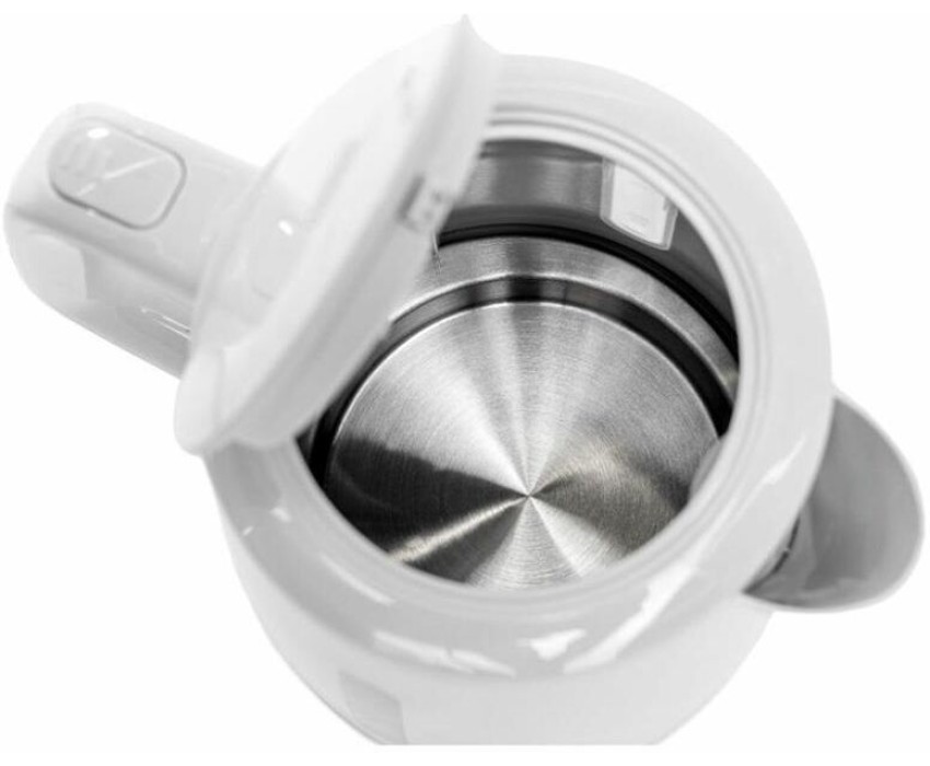 Мощность: 2200. Максимальный объем: 1.7. Нагревательный элемент: скрытый. Цвет: белый. Обратите внимание: Высококачественный корпус. Габариты упаковки (ед) ДхШхВ: 0.215x0.215x0.23. Вес упаковки (ед): 1.11. Страна производства: Китай. Материал корпуса: пластик. Конструктивные особенности: кнопка открытия крышки, подставка 360, фильтр от накипи. Индикация: включения, уровня воды. Безопасность: автоотключение, защита от включения без воды. Мощность: 2200 Вт. Объем: 1.7 л. Нагревательный элемент: скрытый. Материал корпуса: пластик