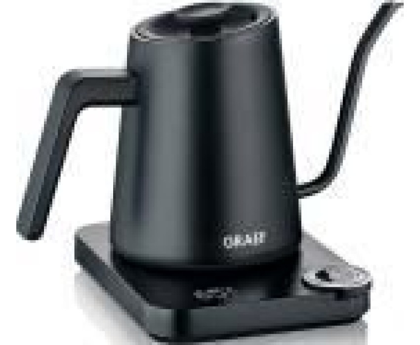 Благодаря изогнутому носику чайника GRAEF GK 502 и его особой форме вы можете медленно и очень точно круговыми движениями распределять воду для заваривания по молотому кофе в фильтре и таким образом извлекать максимальное количество ароматов из вашего любимого сорта. С помощью стильного и интуитивно понятного поворотного регулятора вы можете легко установить желаемую температуру заваривания с шагом в 1°C в диапазоне от 40°C до 100°C. Во время нагрева отображается текущая температура воды. Как только вы начнете заваривать, вы можете запустить таймер заваривания, нажав и удерживая кнопку в течение 3 секунд. Это позволяет вам постоянно следить за временем заваривания. Матово-черный корпус со встроенным фильтром от накипи и объёмом 900 мл и полностью изготовлен из высококачественной нержавеющей стали. Крышка легко снимается для простого наполнения и очистки. Чайник GK 502 с функцией автоматического поддержания температуры в течение 30 минут после нагрева воды - отличная помощь при заваривании чая или кофе! Функцию поддержания температуры можно включить/выключить на задней панели базовой станции по мере необходимости. Здесь также можно включить или выключить предупреждающие сигналы и изменить единицу измерения температуры °C/°F. Характеристики: Объём: 0.9 Материал корпуса: Нержавеющая сталь Цвет корпуса: Чёрный Выбор температуры: Да Режим поддержание тепла: Да Индикатор уровня воды: Нет Индикация температуры: Да Фильтр от накипи: Да Защита от перегрева: Да Защита от выкипания: Да…