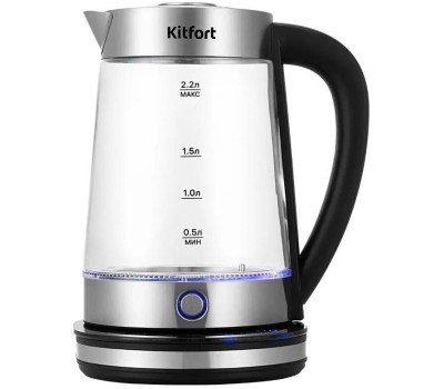KITFORT Чайник электрический КТ-6764 2.2л. 1800Вт черный/серебристый корпус: стекло/металл/пластик (KT-6764)