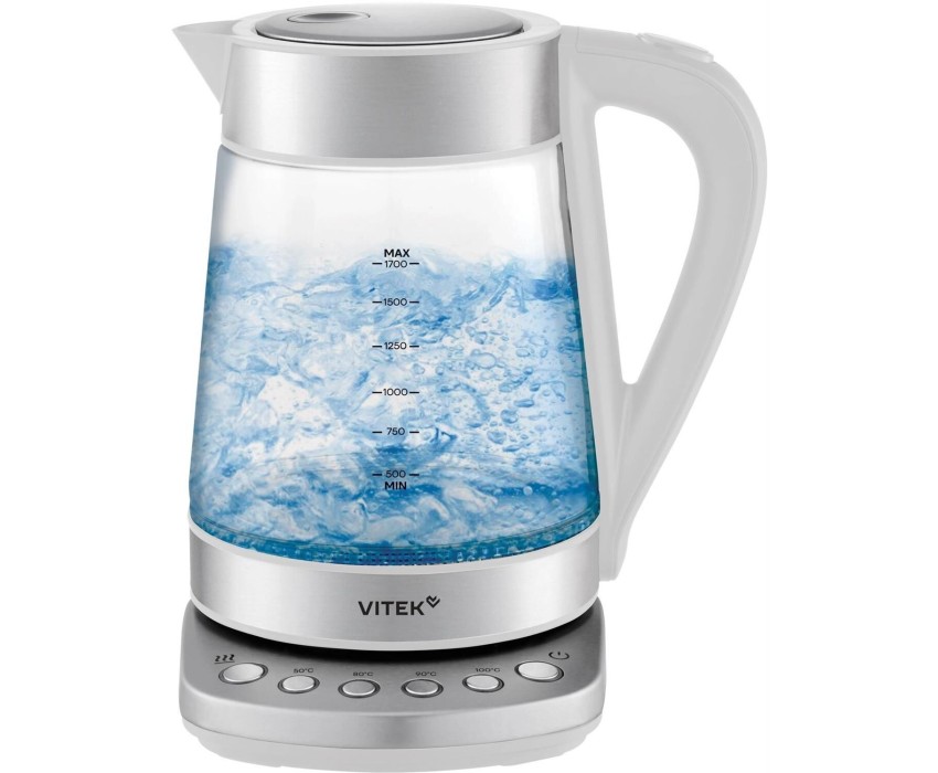 VITEK Чайник электрический VT-WK1031 1.7л. 2200Вт белый/серебристый корпус: стекло/металл/пластик
