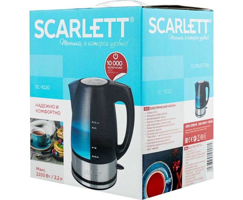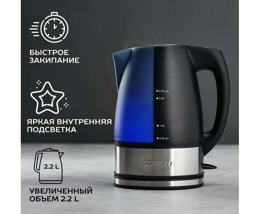 Чайник электрический SCARLETT SC-1020 черный 2,2л