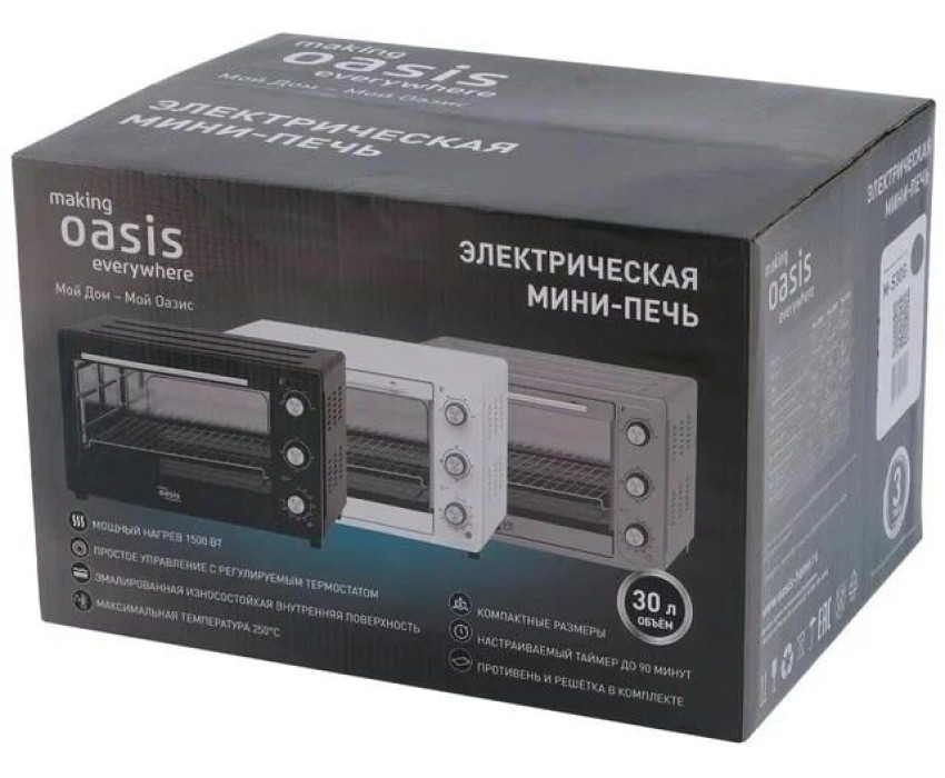 Тип духовки электрическая Внутренний объем духовки 30 л Внутреннее покрытие эмаль Минимальная температура 100 °C Максимальная температура 250 °C Количество режимов работы 3 шт Режимы приготовления верхний, верхний + нижний, нижний Конвекция нет Гриль нет Вертел нет Режим поддержания температуры есть Открытие дверцы духовки откидная Подсветка камеры есть Вид направляющих рельефные Тип управления поворотные переключатели Управление со смартфона нет Приложение для управления нет Голосовой помощник нет Таймер обратного отсчета есть Продолжительность таймера 90 мин Дисплей нет Часы нет Индикаторы есть Дополнительная информация Прорезиненные ножки есть Комплектация документация, противень, решетка Дополнительно термостат Питание Мощность духовки 1500 Вт Мощность конфорок 0 Вт Мощность гриля 0 Вт Мощность конвекции 0 Вт Напряжение питания 220-240В / 50-60 Гц Мощность в выключенном режиме 0 Вт Габариты и вес Ширина 49 см Высота 30.5 см Глубина 36.3 см Вес 7 кг