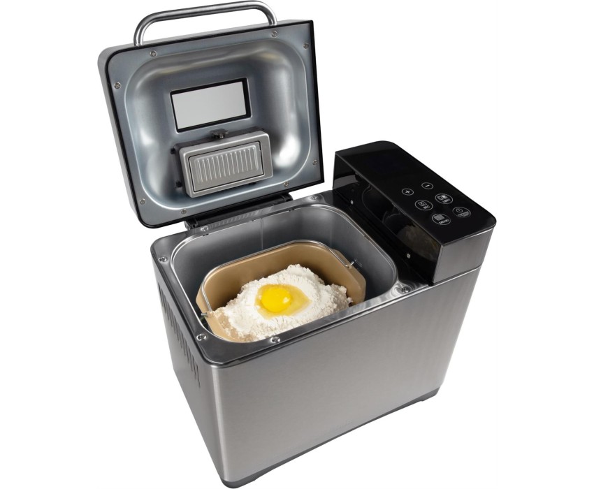Хлебопечь Мощность: 750 Вт Напряжение: 220-240В, 50/60Гц Сенсорная панель управления 19 автоматических программ Автоматический дозатор для ингредиентов LCD дисплей Материал корпуса: сталь Габаритные размеры: 39.2 х 27.9 х 40.2 см Вес (нетто/брутто): 7.2 / 6.3 кг Цвет: Стальной Длина сетевого шнура: 120 см