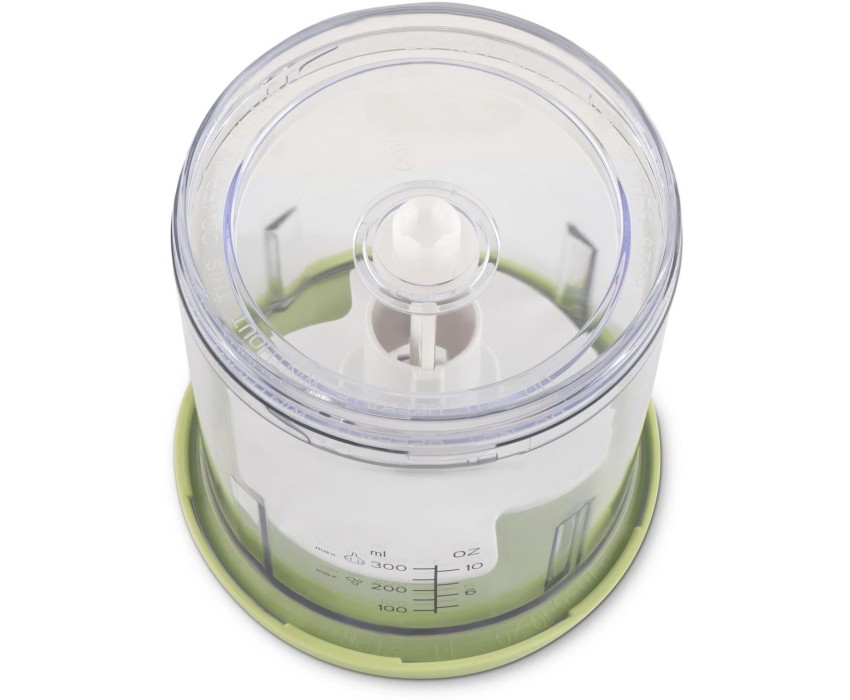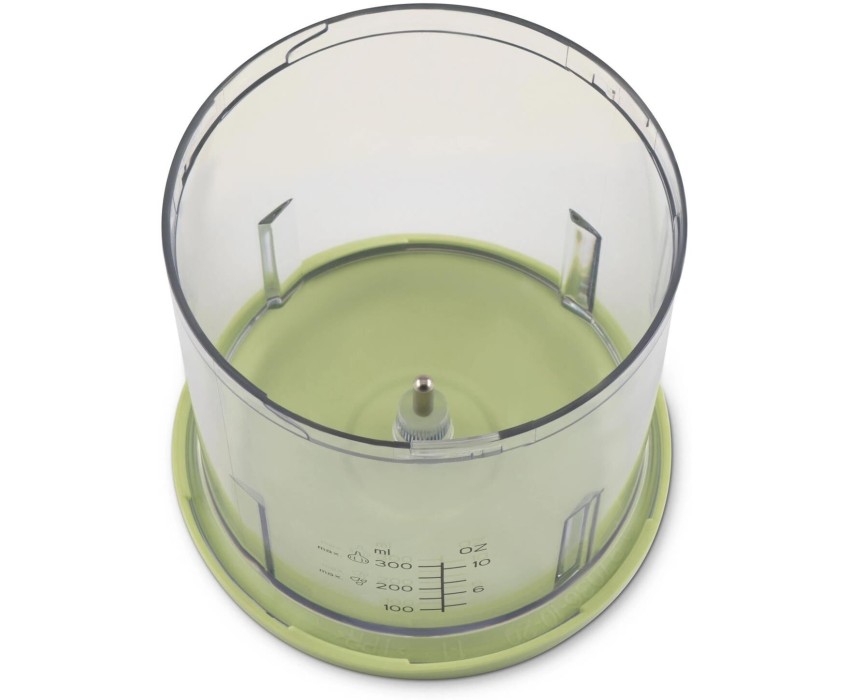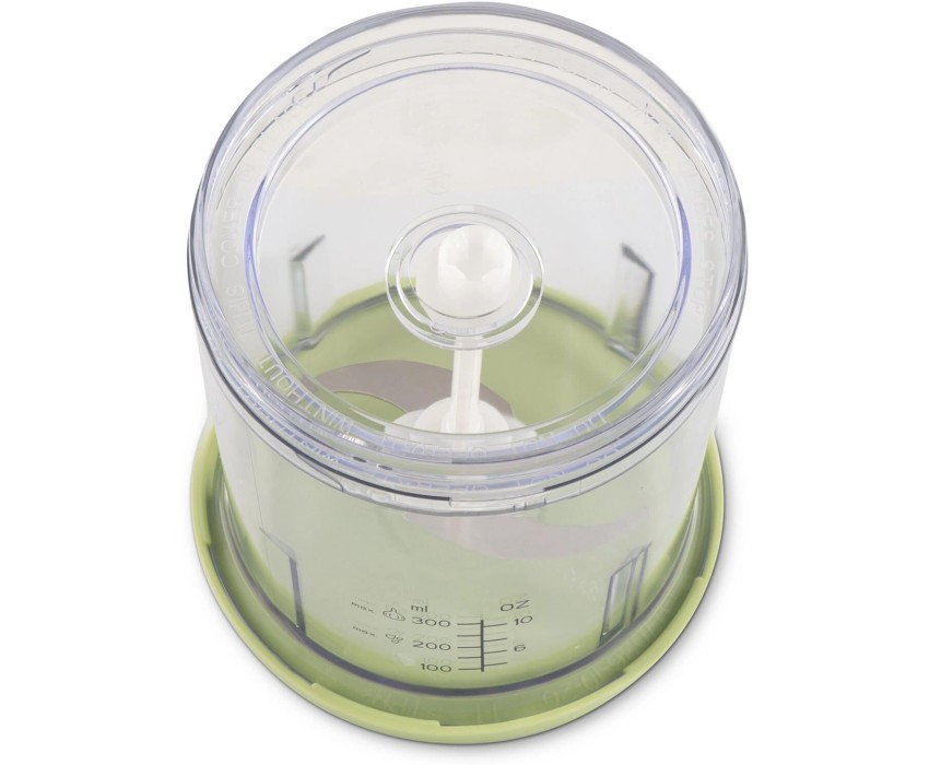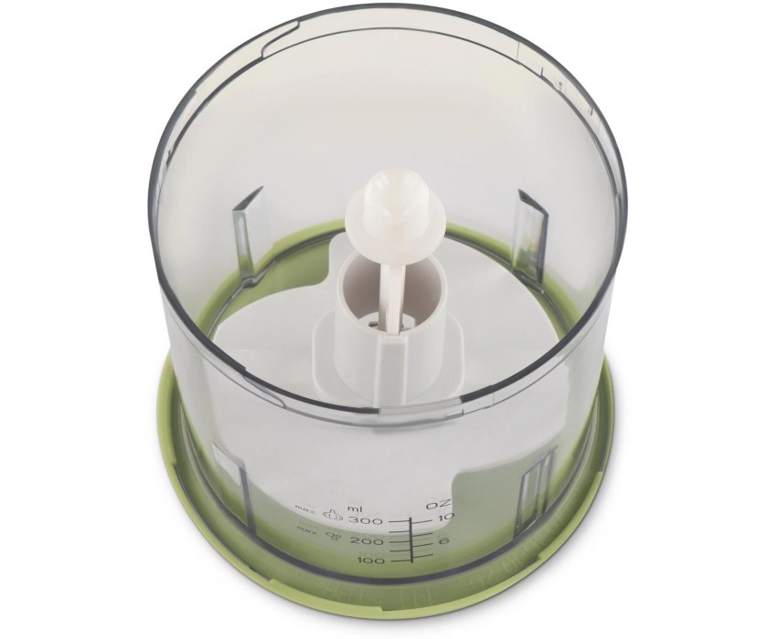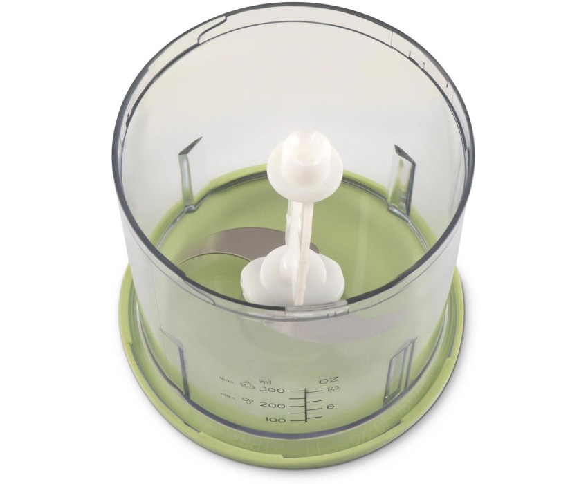 Мощность 350 Вт Емкость 0,8 л. Корпус – пластик +металл Чаша – пластик 1 скорость Двойной нож из нержавеющей стали Импульсный режим Насадка для чистки чеснока Прорезиненные ножки Количество вставок/дисков 2