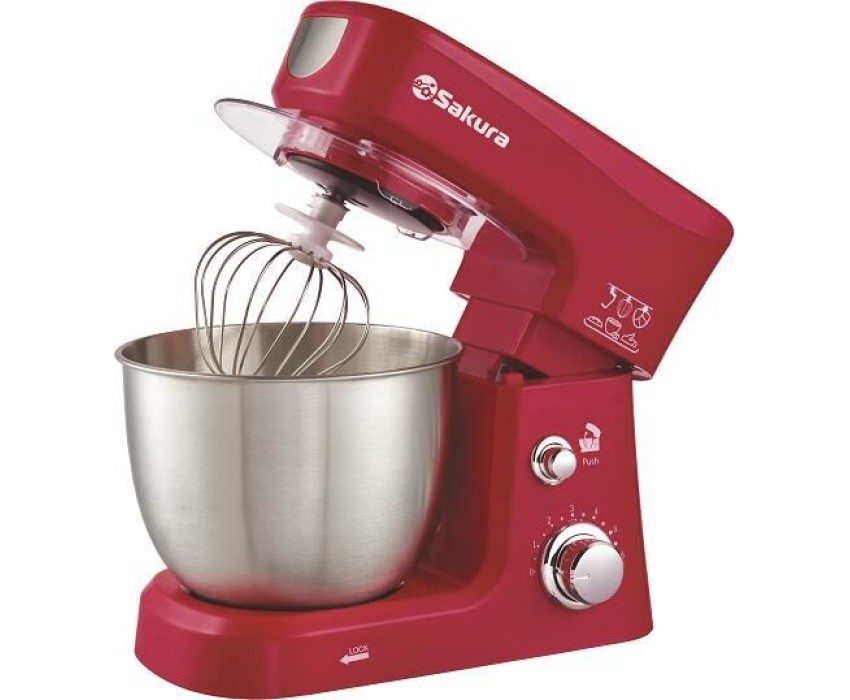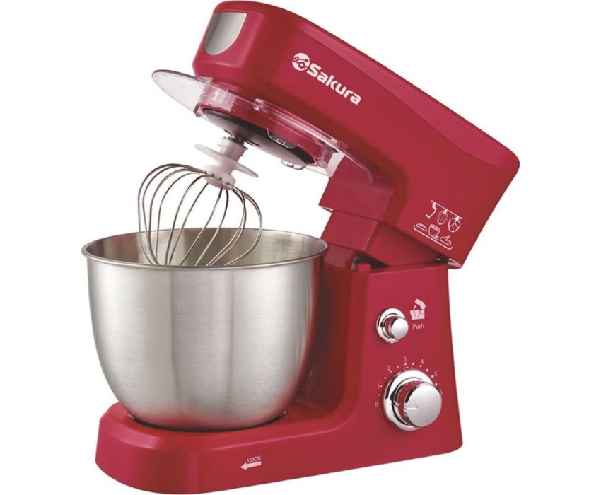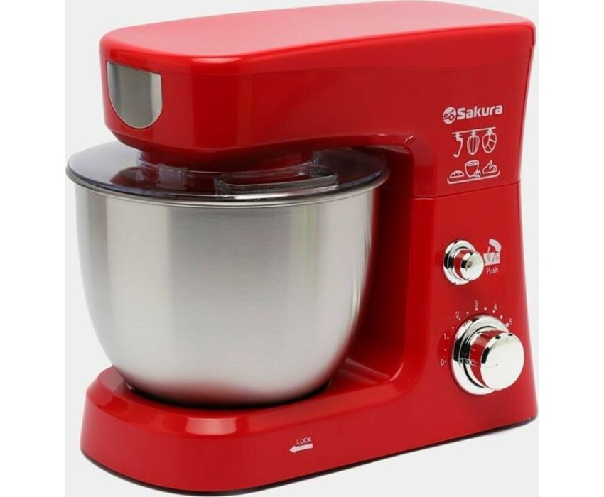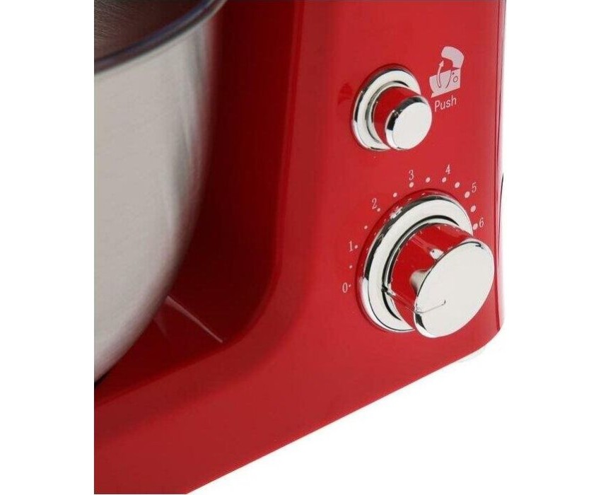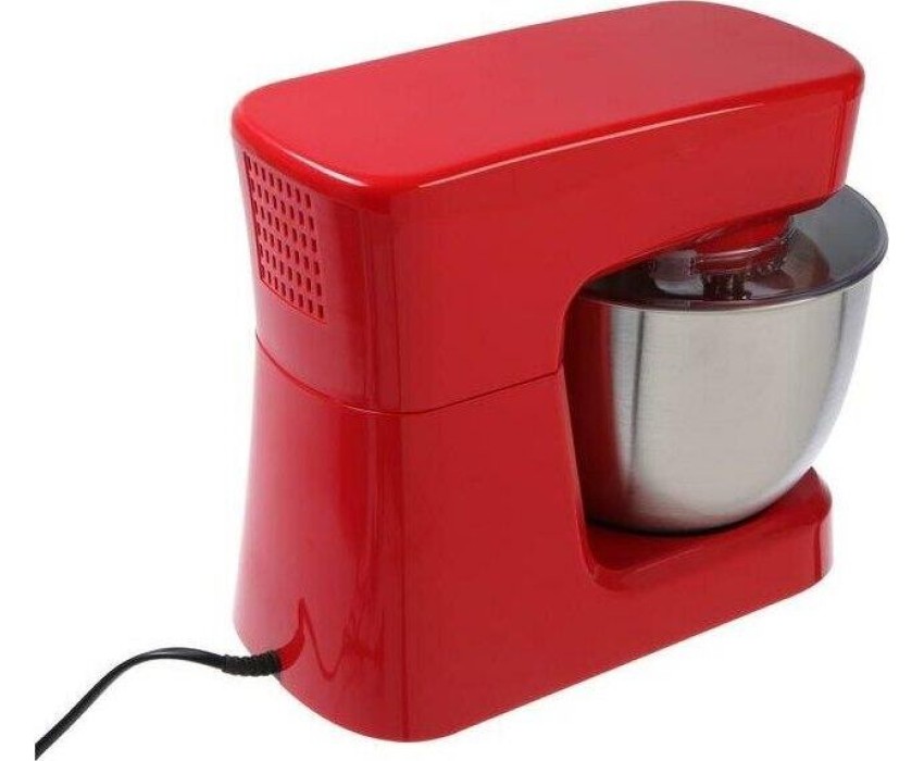 Миксер настольный с планетарным вращением насадок, максимальная мощность 1000 Вт, 6 скоростей работы, чаша из нержавеющей стали (3,5л) с прозрачной крышкой и отвертсием для добавления продуктов в процессе, 3 насадки (объемный венчик, плоский венчик и крюк), лопаточка в комплекте.