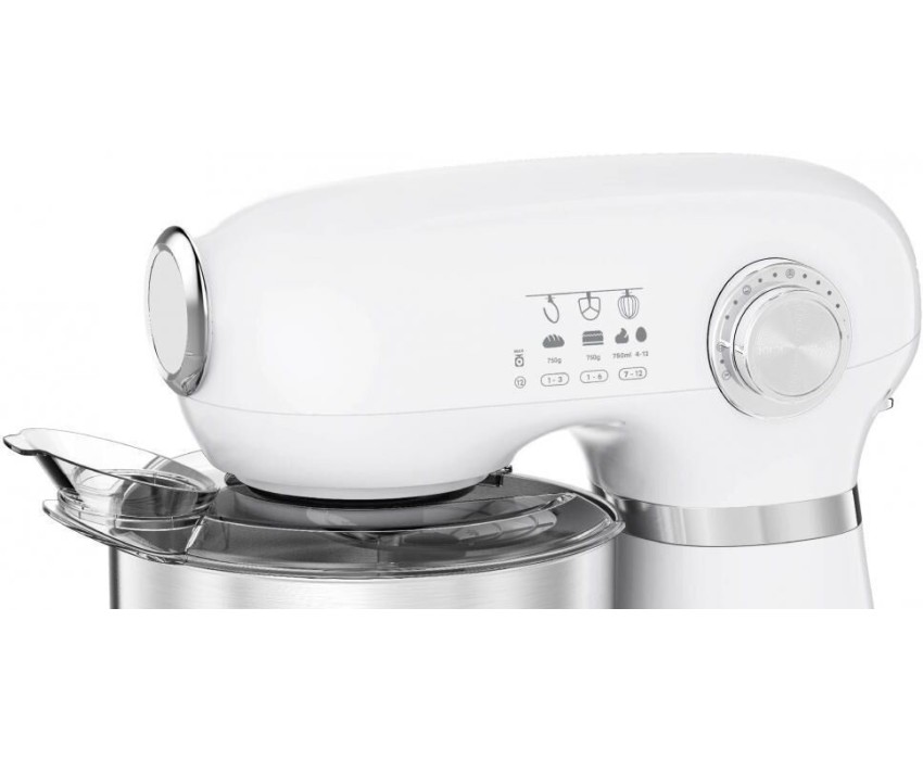 Миксер с чашей Мощность: 2000Вт Металлическая чаша: 5,5л. 12 режимов работы Импульсный режим Низкий уровень шума Съемные металлические насадки: для смешивания, для взбивания, дла замешивания теста Кннопка подъема верхней части корпуса Крышка от разбрызгивания Низкий уровень шума