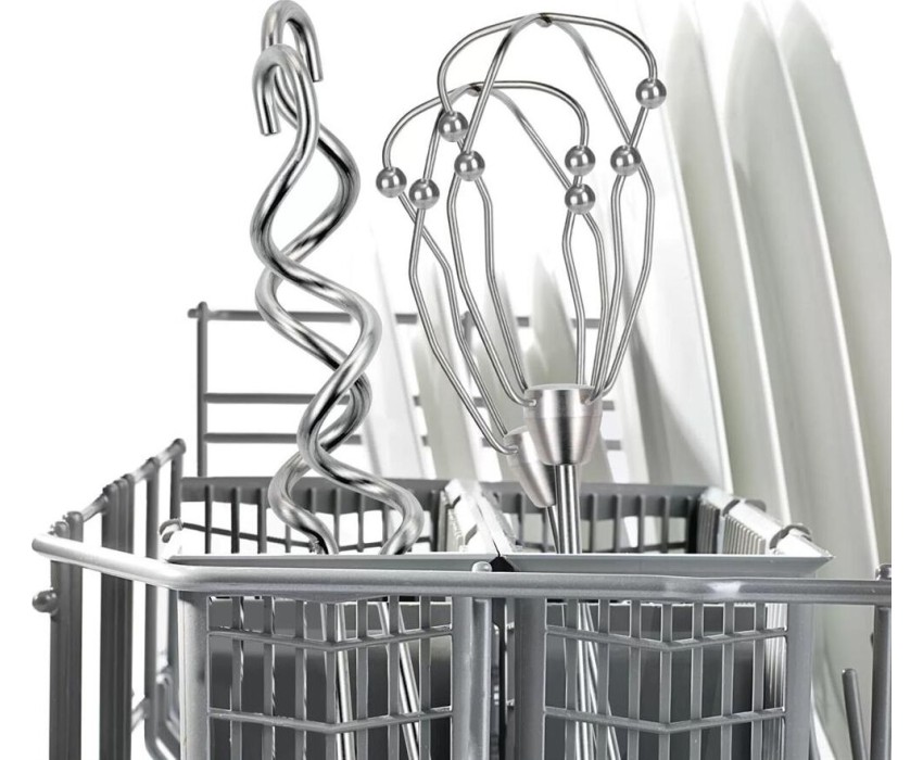 Мощность 500Вт. 5 скоростей. Турборежим. 2 насадки. Венчик для взбивания. Крюки для замешивания теста.