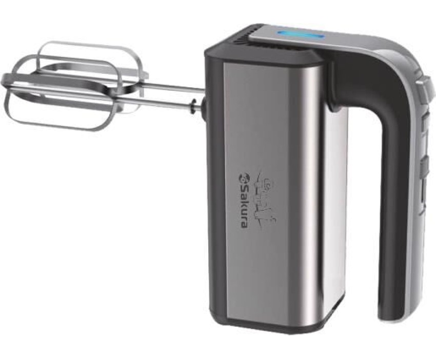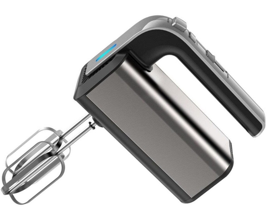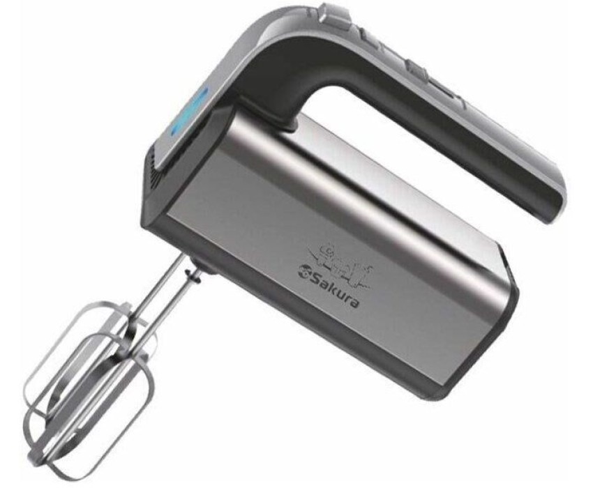 Миксер ручной, 500 Вт, 5 скоростей работы, турбо-скорость, корпус и насадки из нержавеющей стали, 2 венчика, 2 крюка, защита от перегрева.Цвет нерж.сталь/ черный.