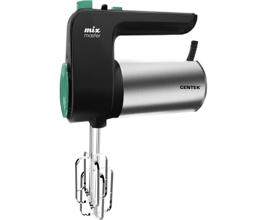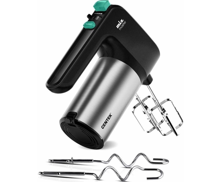 CENTEK CT-1123 Мощность800 Вт Кол-во скоростей6 Режим «Турбо» Стальная отделка корпуса Пара насадок для взбивания Пара насадок для замешивания Кнопка освобождения насадок